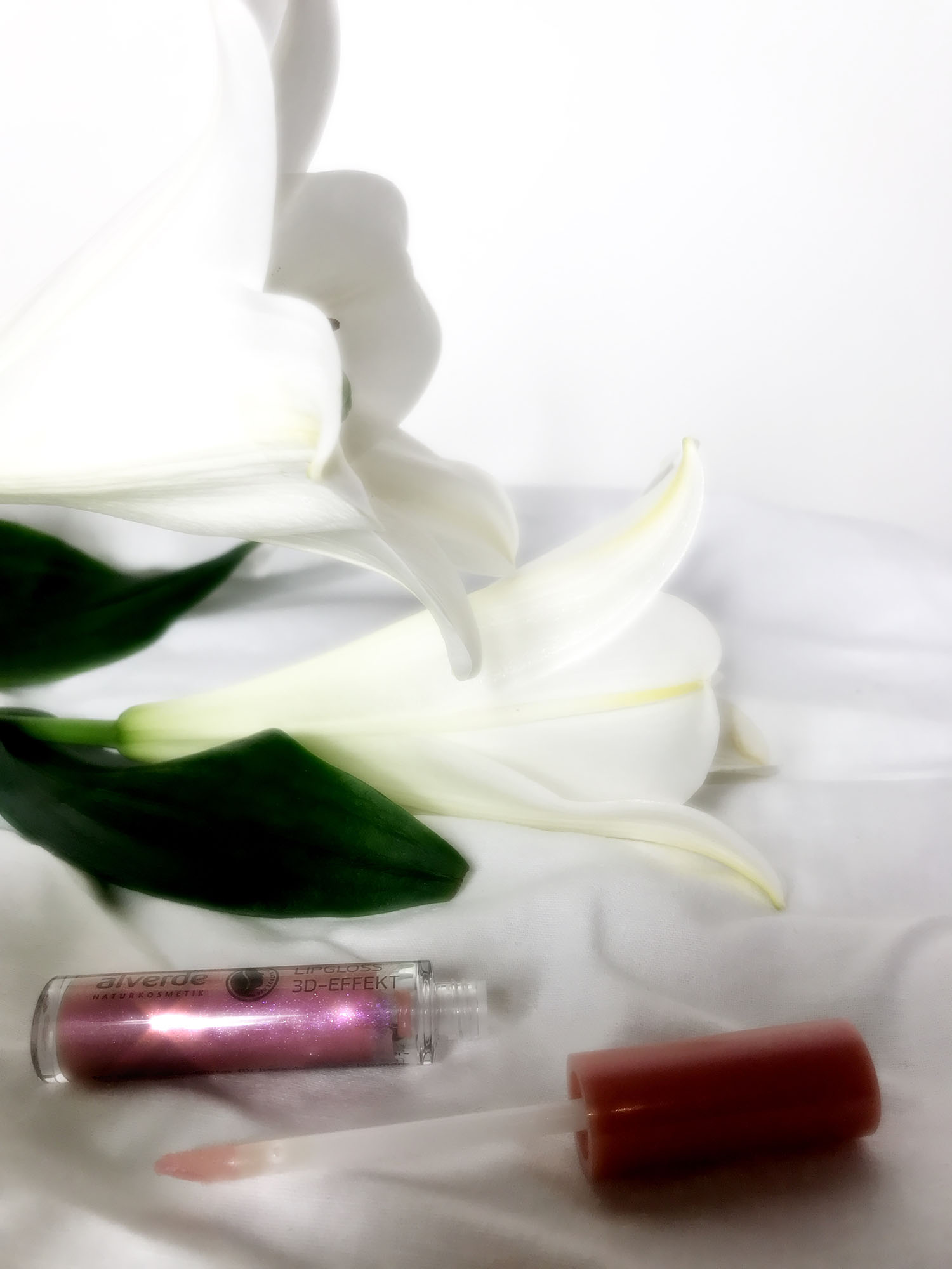 Ich glaube, ich habe schon öfter erwähnt, dass Lipglosse wieder zu meinen absoluten Lieblingsprodukten zählen. Müsste ich mich also für ein Beauty-Produkt entscheiden, wäre es immer der Lipgloss, wirklich wahr. Gerade dann, wenn ich wenig Make-up verwende, holt ein wenig Glanz auf den Lippen so einiges raus – und sorgt trotzdem für einen ultrantürlichen Look. Außerdem mag ich das klebrige Gefühl auf den Lippen und obendrein fühle ich mich wunderbar an die 90er Jahre erinnert. Hach. Der „pink Crush“ 3D Effekt Lipgloss von Alverde taucht die Lippen oder sogar gleich die Augenlider in ein zartes Rosa mit Schimmer-Effekt.