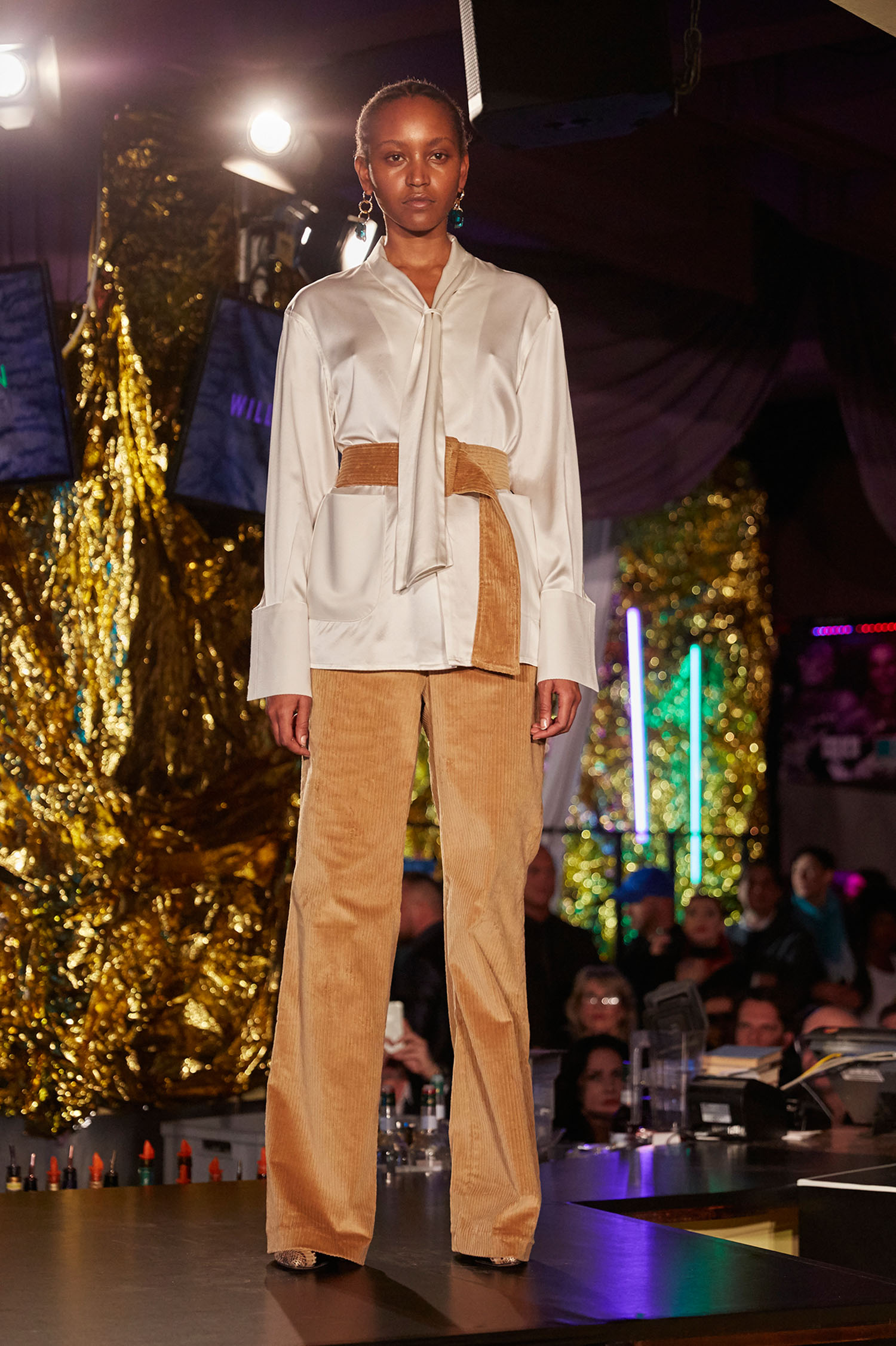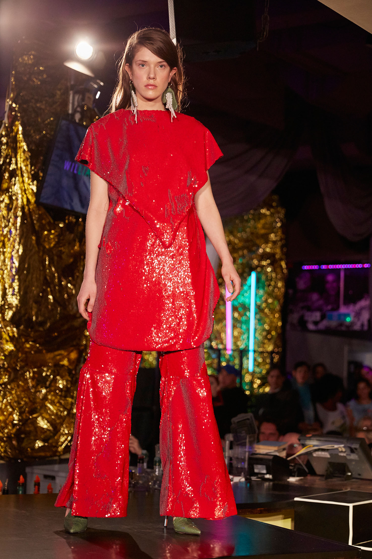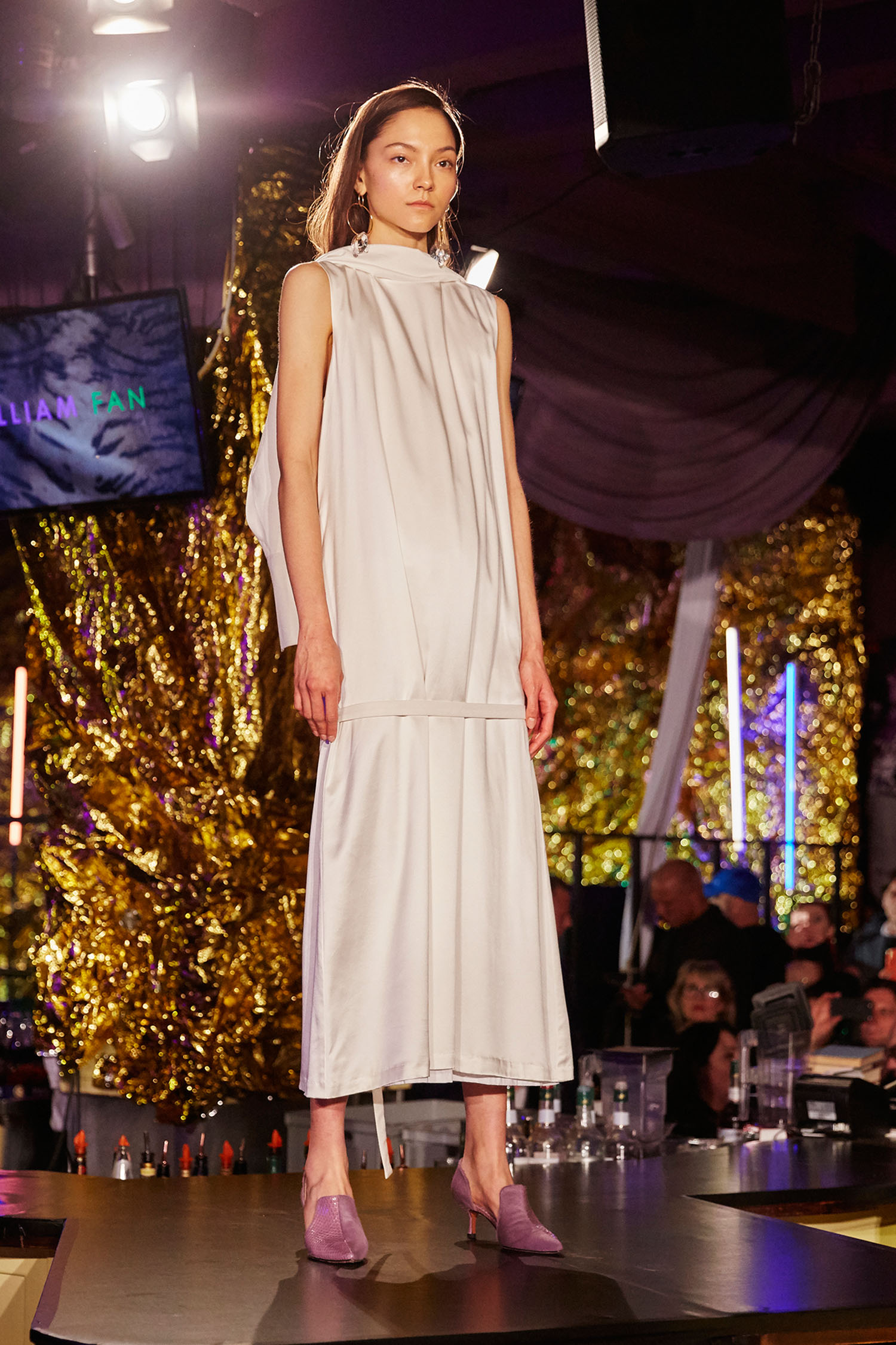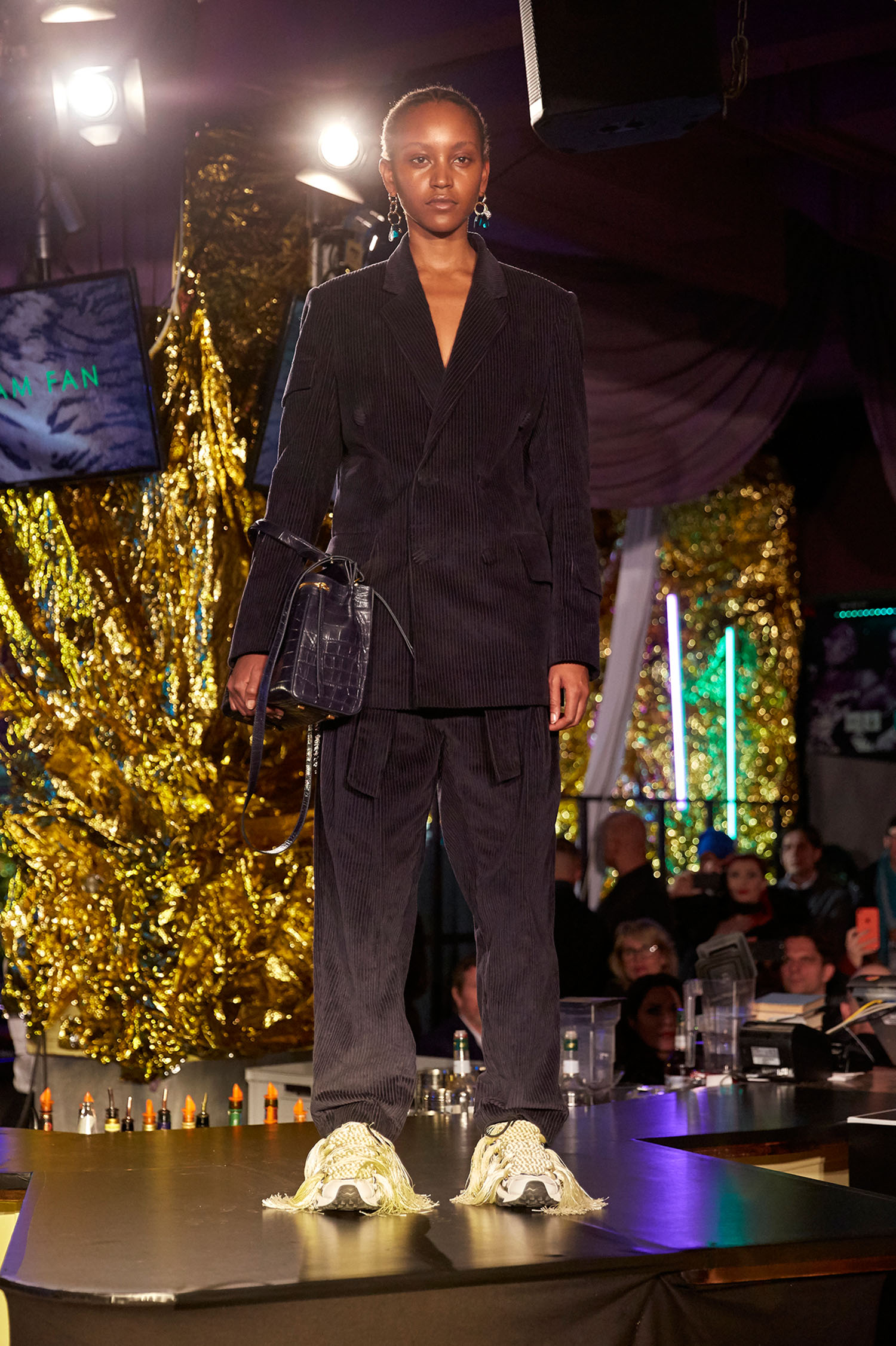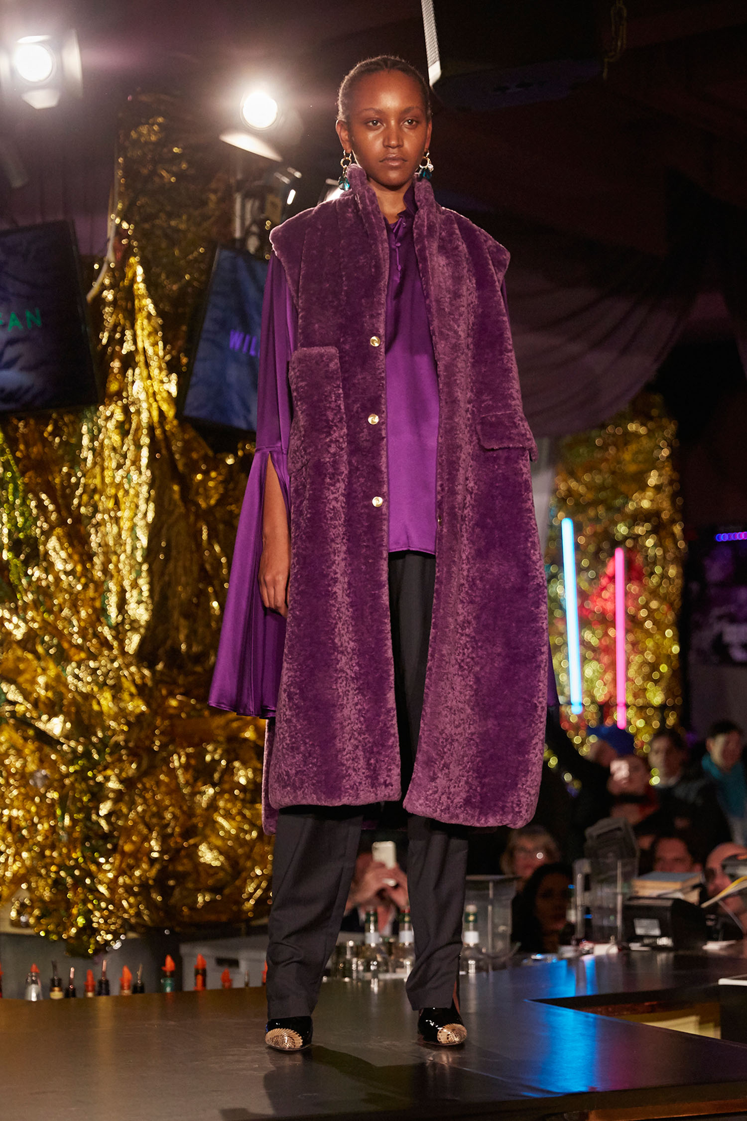 Animal Prints, laute und bunte Farben, effektreiche Texturen, die im Licht der Spiegelkugel reflektieren, treffen auf ruhige Silhouetten, klassische Schnitte und Materialien wie Cord. Die bekannten Trenchcoats von WILLIAM FAN sind neu aufgelegt in puderorsanem Paillettenstoff oder Tiger-Optik, sie erinnern an die Looks von Ikonen, die wir von der Showbühne kennen. Ebenso haben die vertrauten Town Heels eine Oberfläche aus Flieder erhalten und stehen zudem auf Kitten-Absätzen auf der Tanzfläche. Für die Fall/Winter 2019 erstellt WILLIAM FAN ebenso erstmals Ankleboots im Materialmix, raffinierte Zopfstrickpullover, Schlangen-Prints, Mohair-Cardigans und breite Gürtel für die Taille, sowie vermehrt Cocktailkleider mit einer femininen Silhouette. |