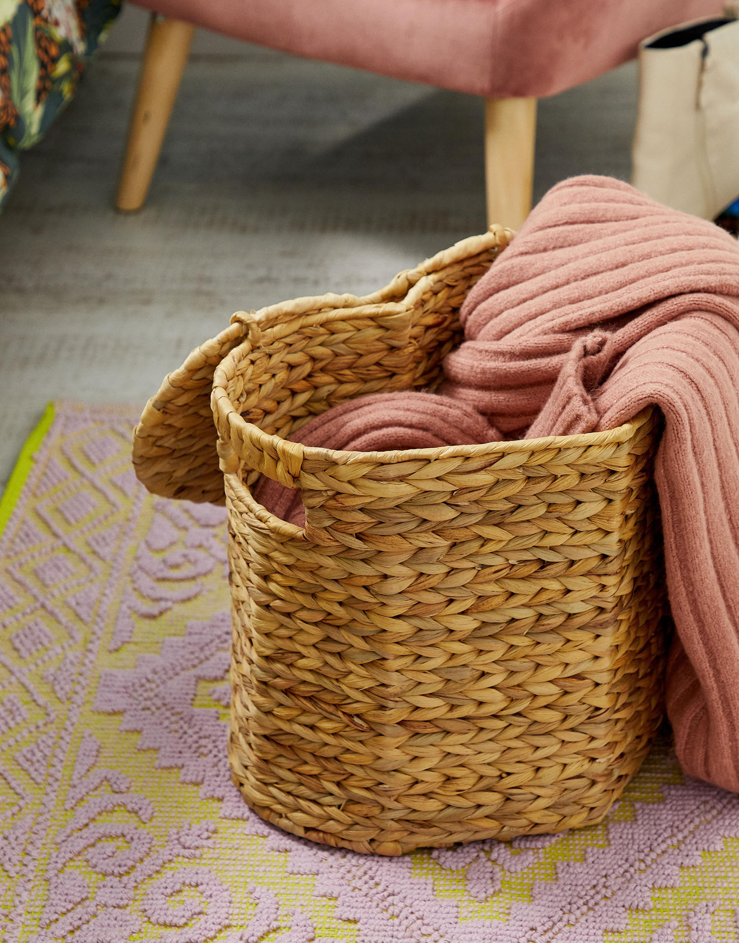 Handtüchern zu sehen sind. Durch dezente Einrichtungsgegenstände, witzige Tierformen sowie verspielte Aufbewahrungsboxen wird dieser Trend zum Leben erweckt. GLOBAL TRAVELER – von natürlichen Materialien und knalligen Farben inspiriert. Die Produkte zeigen traditionelle Webtechniken bei handgewebten Weidenkörben oder von den 70er Jahren inspiriertem Rattan und werden mit grafischen Geotextilien sowie zeitgenössischen Mode-Prints kombiniert.