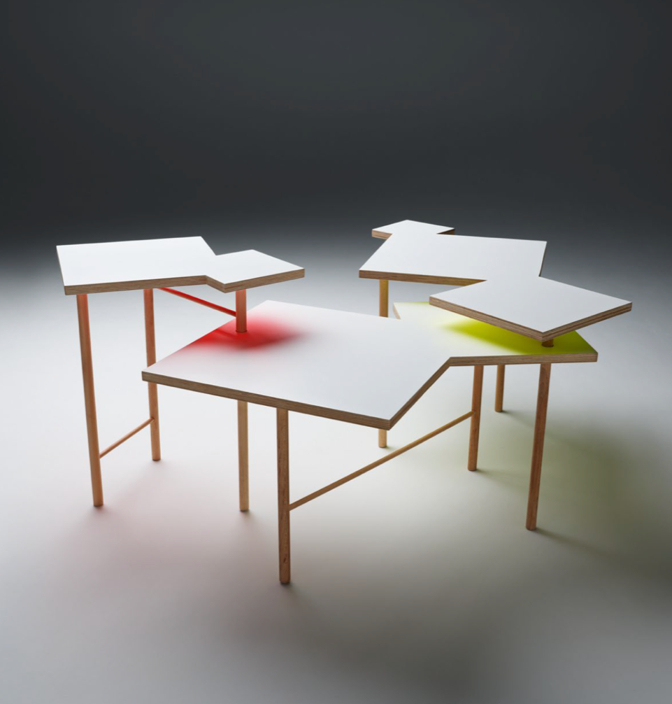 Der Utsuri Table soll eine kreative Lösungen für unser urbanes Leben auf kleinstem Raum darstellen, um Menschen wieder in den Mittelpunkt zu rücken. Die Idee des Tische ist angelehnt an das Konzept des traditionellen japanischen Chabudai-Tisches: So wurde in Japan früher – und vielerorts noch heute – der Chabudai, ein flacher Klapptisch auf vier kurzen, ausklappbaren Beinen von maximal 30 cm Höhe, mitten im Tatami‑Zimmer aufgestellt. Durch die oftmals beengte Wohnsituation in Japan ist dieser Raum multifunktional: Tagsüber wird der Tisch ausgeklappt, nachts wird dagegen der Futon zum Schlafen ausgerollt. Durch den Chabudai wird der neutrale Raum wahlweise zu einem Ess‑, Tee- oder Arbeitszimmer. Es ist also der Tisch, der dem Raum einen Zweck gibt und zum Zentrum der Aktivität wird. Ebenso lässt sich der Utsuri Table, der aus beweglichen, ineinander gesteckten Elementen besteht, ineinander schieben, um die Form und die Spannbreite der jeweiligen Wohnsituation anzupassen.