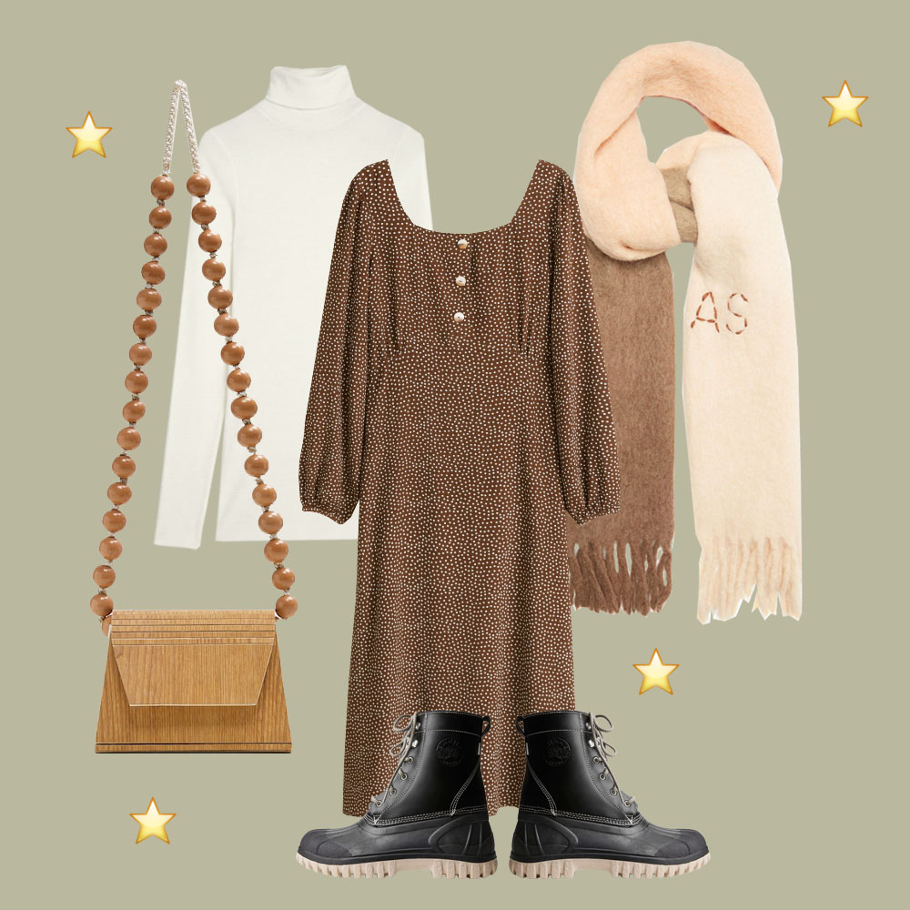 Vier Sommeranwärter haben wir uns also schon heute geschnappt, um die Zeit bis zum Frühling etwas erträglicher zu machen: Das zarte Punktekleid, den ärmelfreien Pullunder, den Midi-Rock und natürlich die Latzhose – um euch zu beweisen, dass sie schon jetzt wieder rausgekramt werden sollten. Vergesst die Strumpfhose und selbstverständlich die warme Winterjacke nicht – und los geht’s: