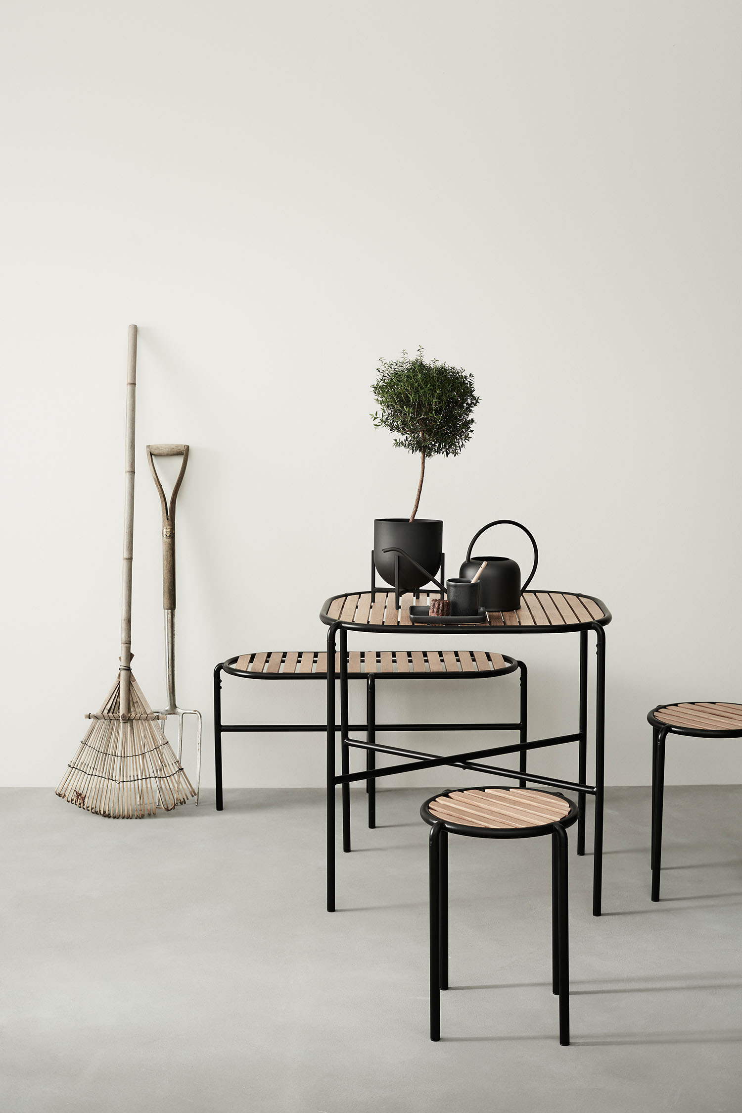 … und trifft damit tatsächlich komplett ins Schwarze. Der Schwede erweitert nun das Sortiment an Möbeln und Beleuchtung und bringt erstmals eine Outdoor Kollektion auf den Markt, die von runden Formen und natürlichen Materialien geprägt ist. Darunter Möbel aus Holz und Rattan sowie erstmalig Outdoor Möbel in einem Set aus Eiche und schwarzem Stahl.