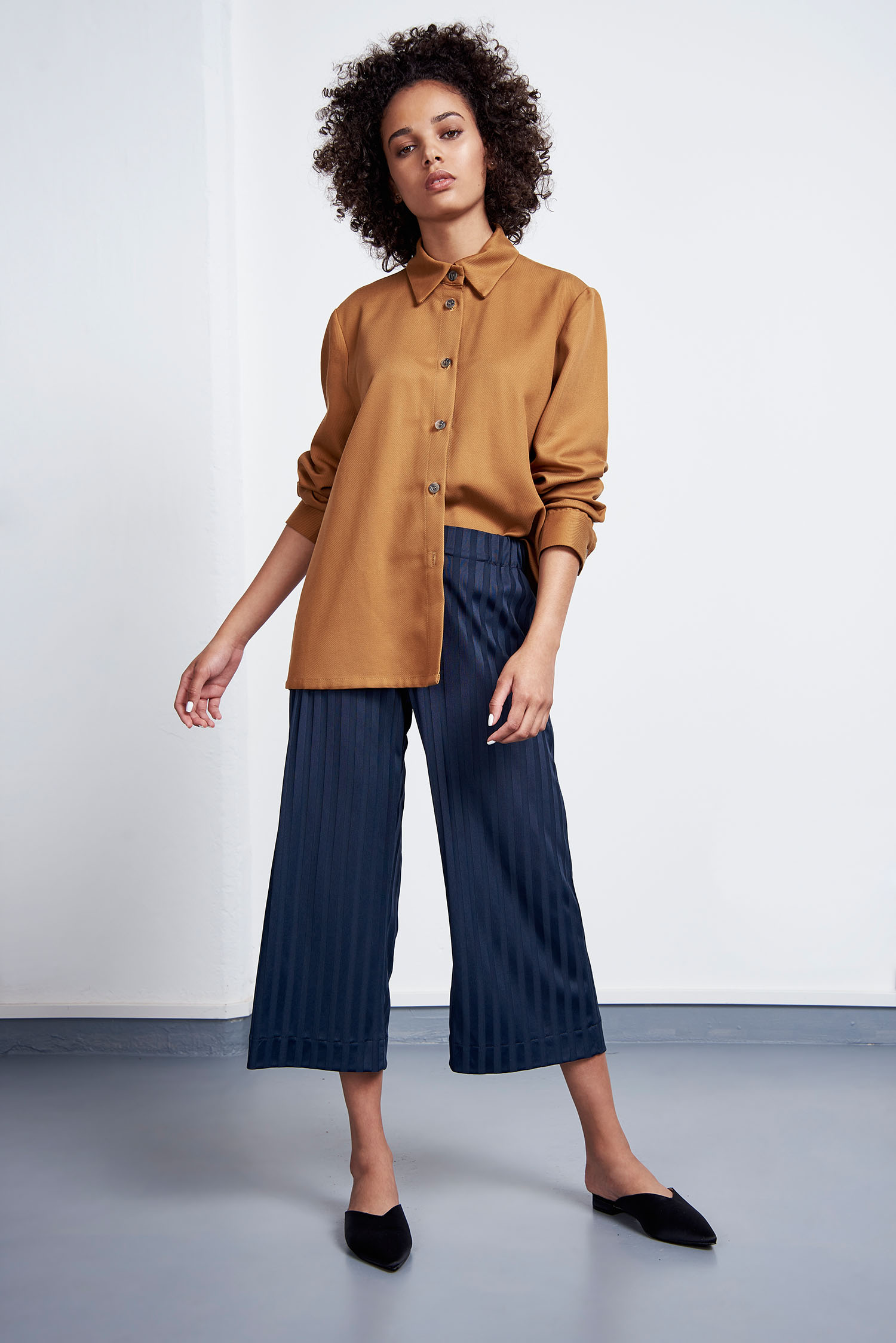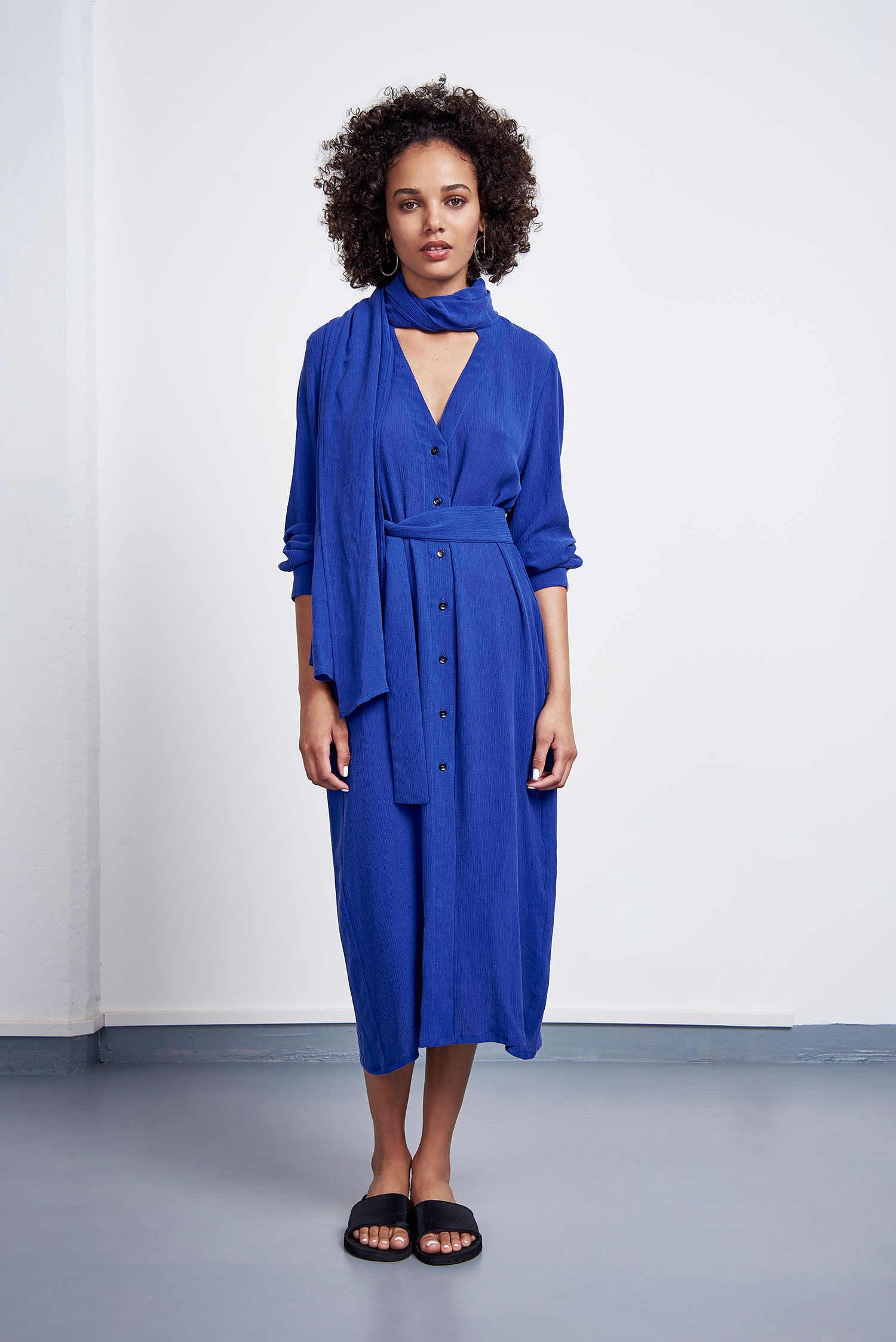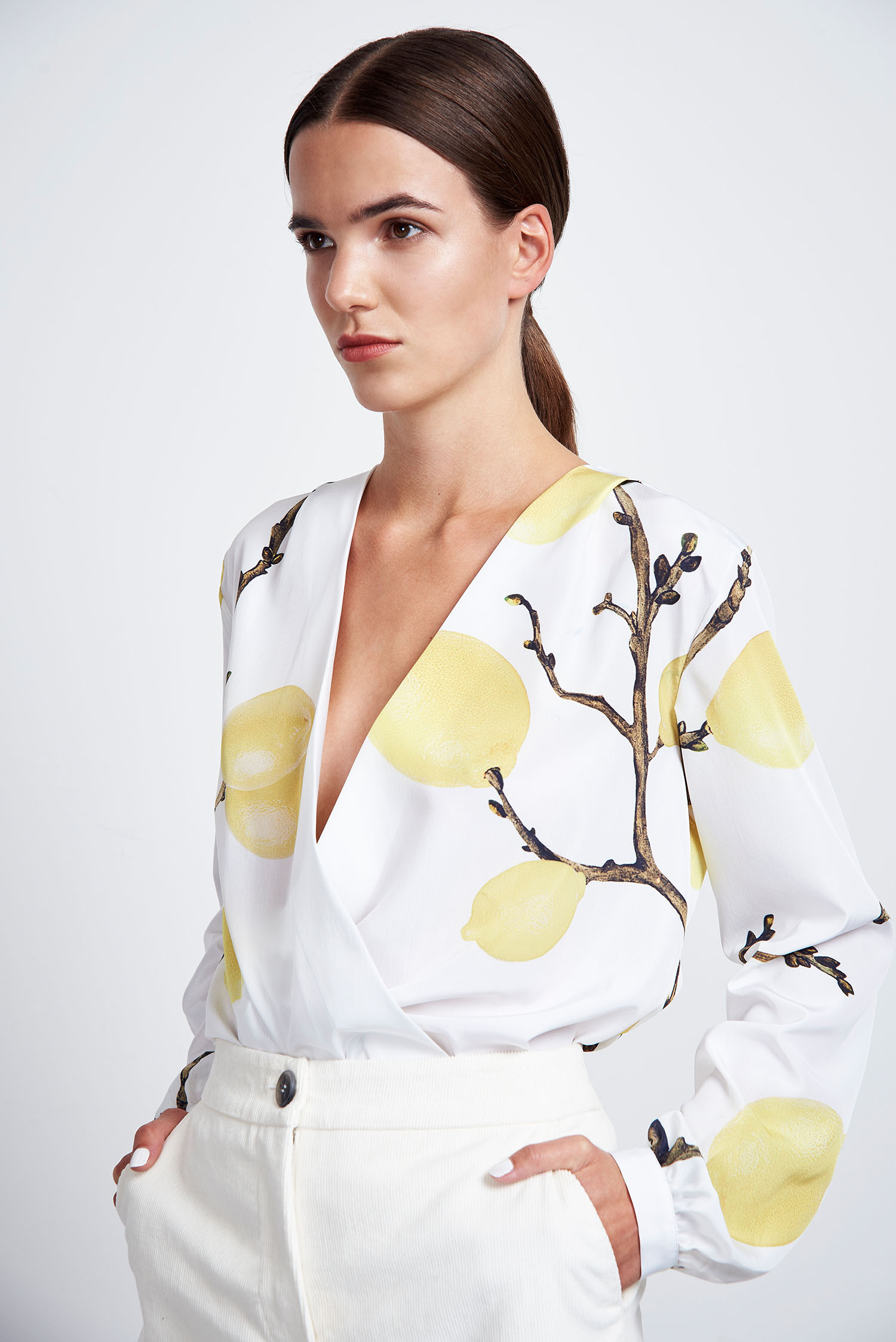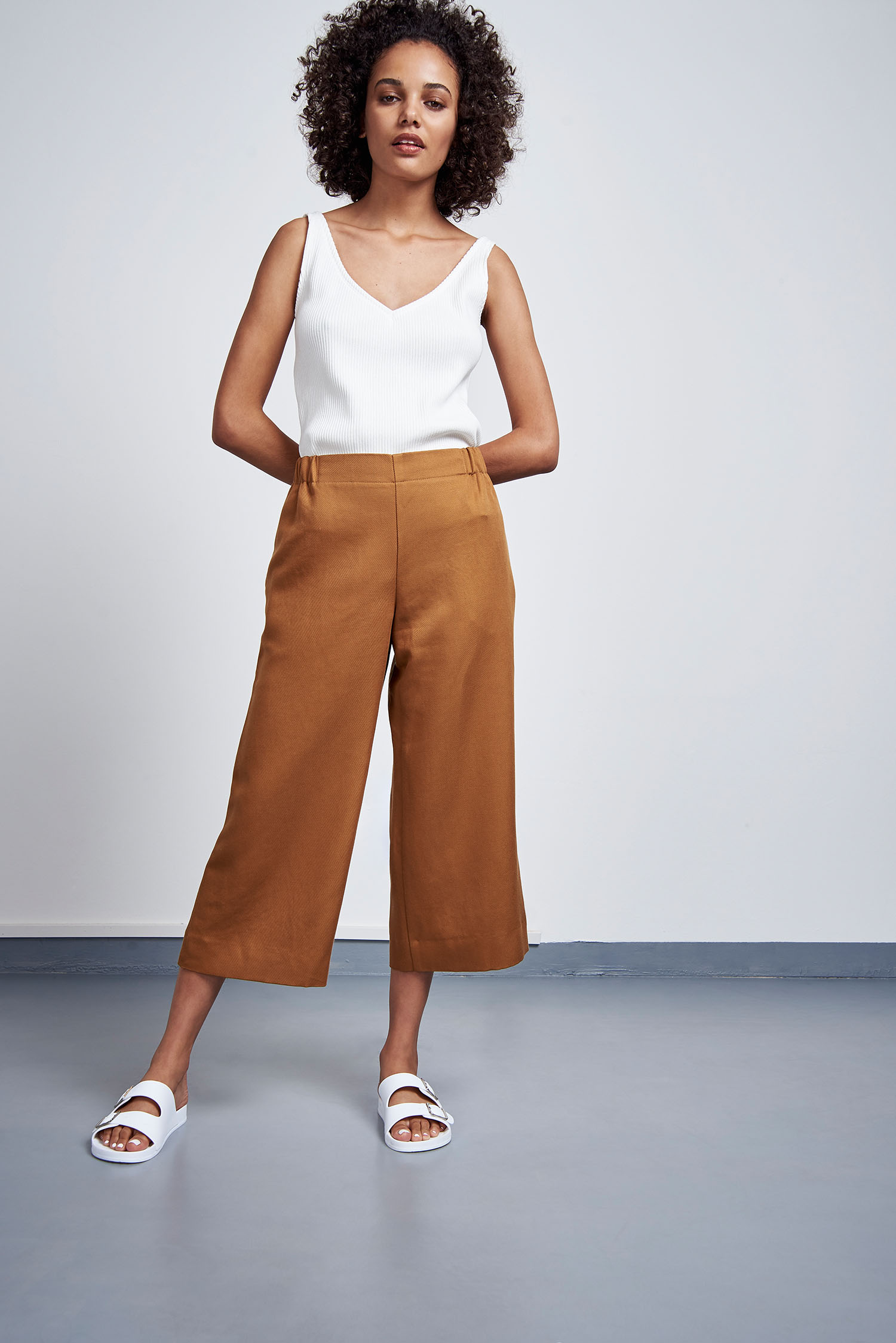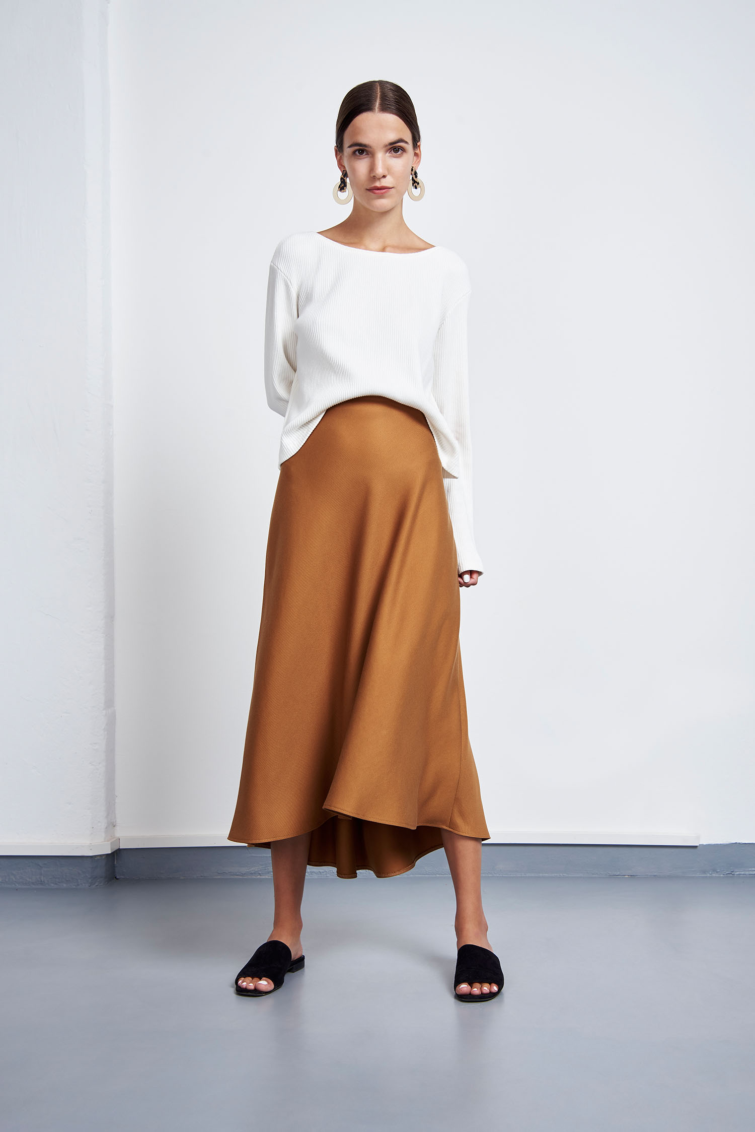 Zitronenprint, fließende Materialien und leichte, feminine Schnitte: Es kamen vorwiegend helle Farben wie cognac, weiß und gelb zum Einsatz. Dennoch finden sich dazwischen auch zarte Fliedertöne und ein elektrisierendes Blau. Die verwendeten Materialen weisen spannende Oberflächenstrukturen auf, so wie zum Beispiel ein gekreppter Tencel®, ein Recyclingpolyester Strick und ein Waffleknit aus Recyclingbaumwolle. Die Preisspanne von JAN ’N JUNE liegt zwischen 38€ für ein Oberteil und 260€ für einen Trenchcoat.