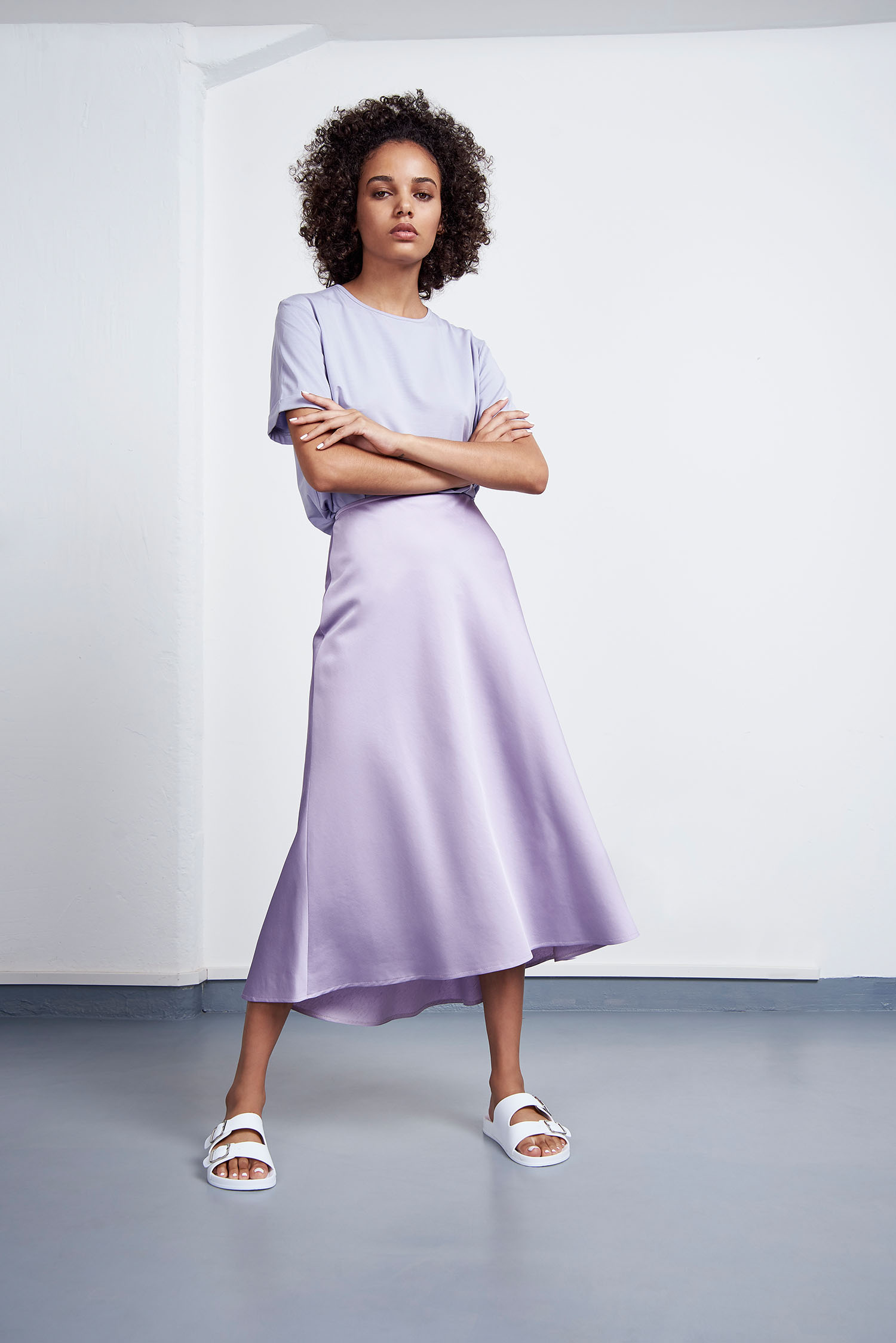 Mit ihren fliederfarbenen Entwürfen und ihren spezielleren Schnitten treffen Anna und Juliana nicht nur direkt in unser Herz, sie geben Kritiker*innen nun wirklich gar keinen Anlass mehr, an der Besonderheit von Fair Fashion herumzumäkeln. Ich jedenfalls bin schwer verliebt in die Kreationen im Lila-Ton, sehe mich längst im obigen Kleid mit weißem Shirt drunter durch den Sommer flitzen und kann es kaum erwarten, den beiden Macherinnen dabei zuzuschauen, noch mehr großartige Fair Fashion Kollektionen auf den Markt zu bringen, um unseren Horizont nicht nur zu erweitern, sondern auch die passenden Alternativen zu umweltschädlichen und unter schlechtesten Bedingungen hergestellten Kleidungsstücken zu kredenzen.