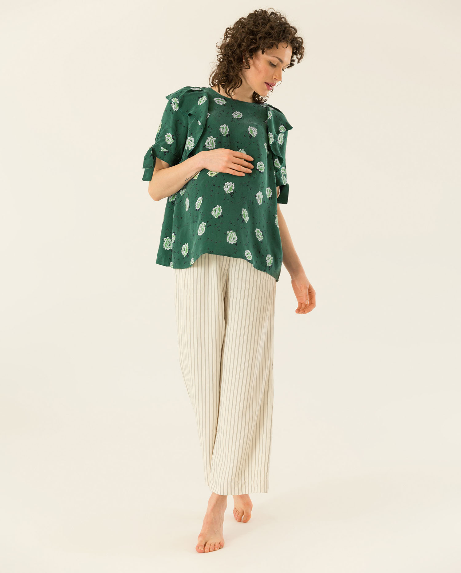 Die Kleider und Blusen sind so kreiert, dass sie während der Monate der Schwangerschaft ein hohes Maß an Komfort gewährleisten sollen und sie sind sie so beschaffen, dass sie einen kühlenden Charakter haben und dank Knöpfung auch zum Stillen geeignet sind. Das Beste: Über die Schwangerschaft hinaus bleiben die Stücke weiterhin tragbar – und folgen so Carolines nachhaltigem Anspruch.