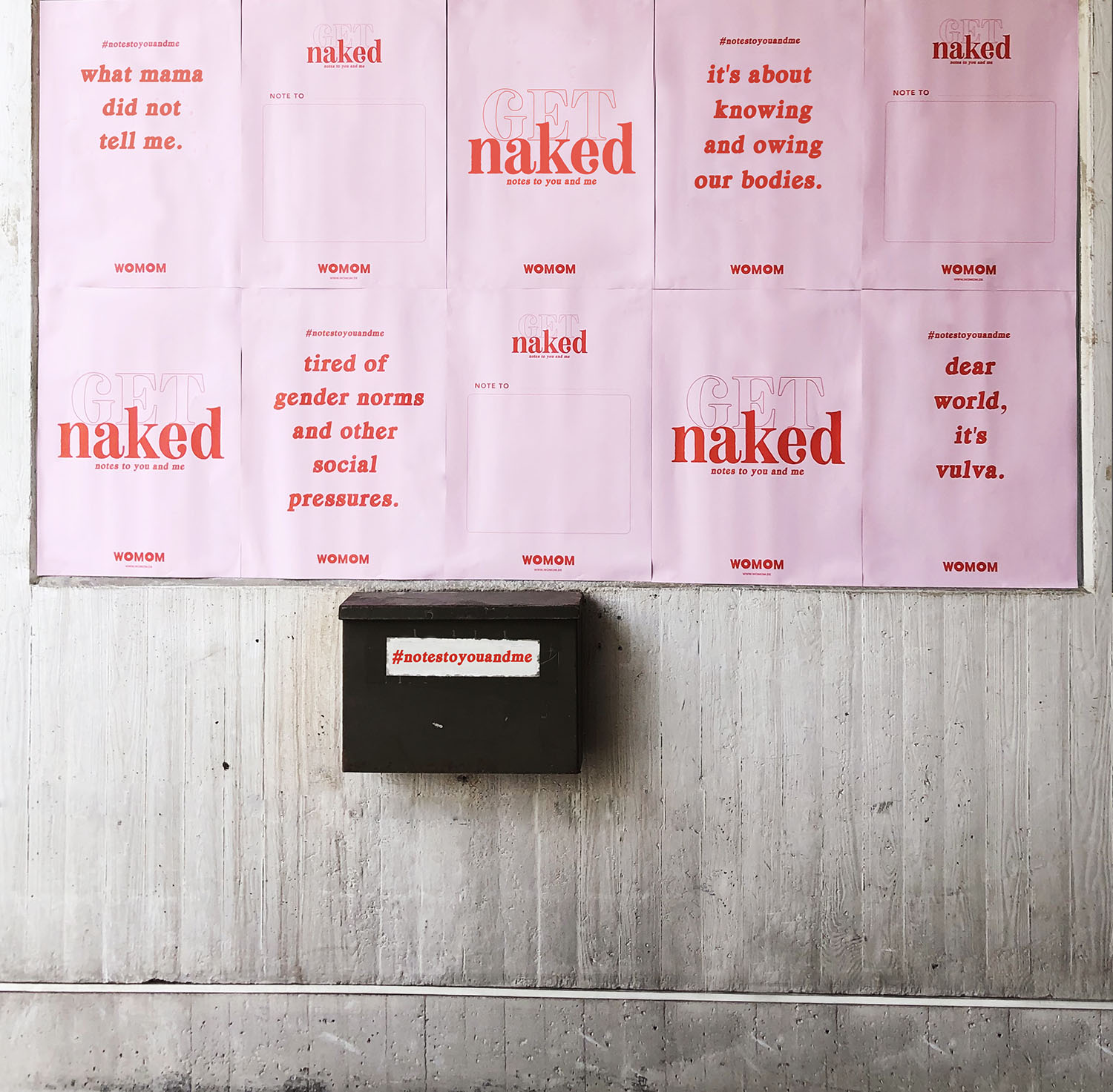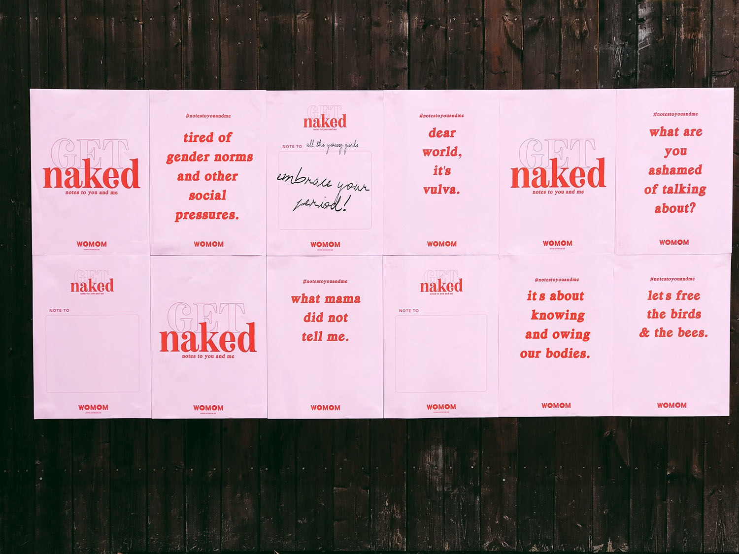 Bei Get Naked! Notes to you and me geht es um Sex und all seine Bereiche (Körper, Körperentwicklung, Periode, Liebe, Gefühle, Lust, der Akt selbst und auch das Thema Schwangerschaft und Abtreibung). Womom will mit der Kampagne über Aufklärung, Sex und Körperbewusstsein sprechen und Erfahrungen sammeln und teilen. Wie aufgeklärt sind wir eigentlich? Warum gibt es immer noch so viele Tabus und Missverständnisse? Wieso hängen wir da immer noch in gesellschaftlichen Normvorstellungen fest? Über was muss noch gesprochen werden? Was beschäftigt Euch?