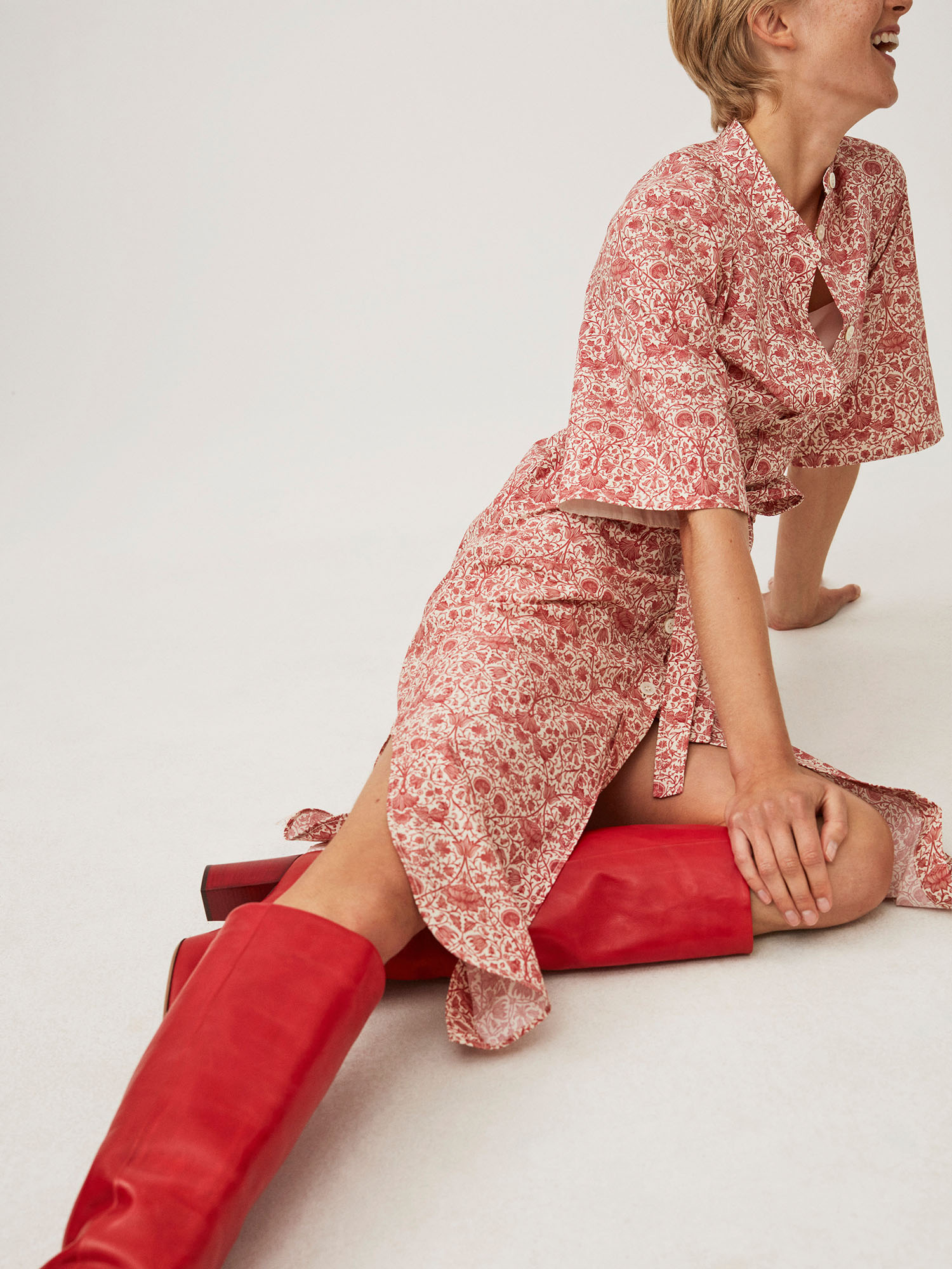 Seit über 140 Jahren steht Liberty Fabrics für lebendige Farben und ebenso lebendige Drucke. Das Unternehmen startete als kleiner Stoffladen in der Londoner Regent Street und bot dort eine exotische Auswahl an Stoffen aus ganz Asien an: weiche Wolle aus Kaschmir, feine leichte Baumwolle aus Indien und handbemalte Seiden aus China und Japan. Zunehmend konzentrierte sich Liberty auf den Import von einfachen Textilien, die in England schließlich gefärbt und handbedruckt wurden. Die meisten Designs wurden an prachtvolle Blumenmuster angelehnt, die traditionellen Ornamenten des Orients entsprangen, die noch heute zu den Klassikern der floralen Prints zählen und nun sogar eine eigene Capsule Collection bei ARKET bilden. Und um genau die dreht es sich hier.