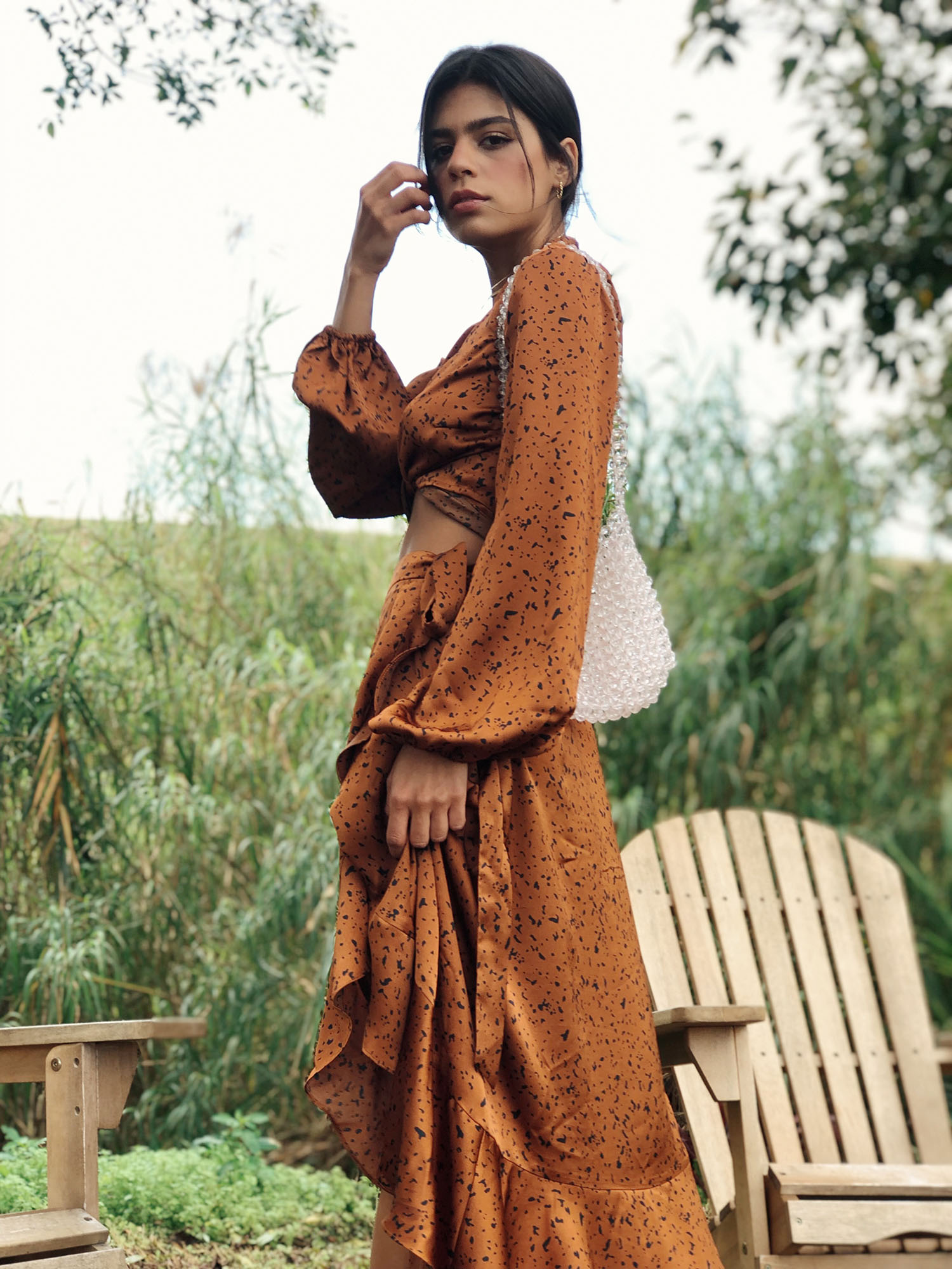 Eine kuratierte Kollektion aus femininen Silhouetten und mühelosen Schnitten prägen Narrated, die neue Womenswear-Linie aus dem Hause Urban Outfitters. Inspiriert von leichten Sommernächten und dem jungendlichen Lebensgefühl, widmet Narrated sich purer Romantik in floralen Mustern und Rüschen-Details. Die Farbpalette ist ein Mix aus erdigen und knalligen Farben wie Gelb, Pink, Ocker und Kupfer und versteht sich als eine Ode an die imposante Landschaft im Frühling. Highlights der Kollektion sind der fliederfarbene Jumpsuit in fließendem Schnitt und der Splash-Zweiteiler.