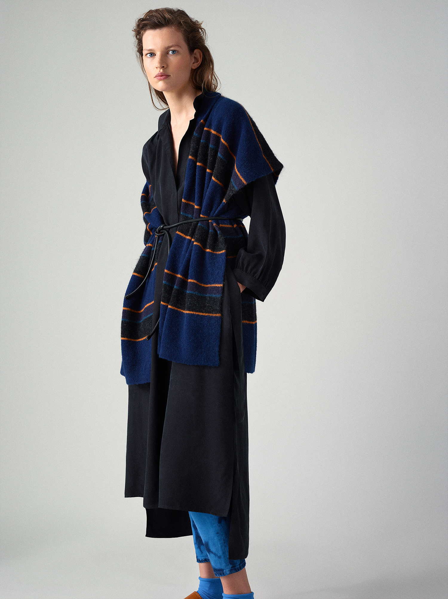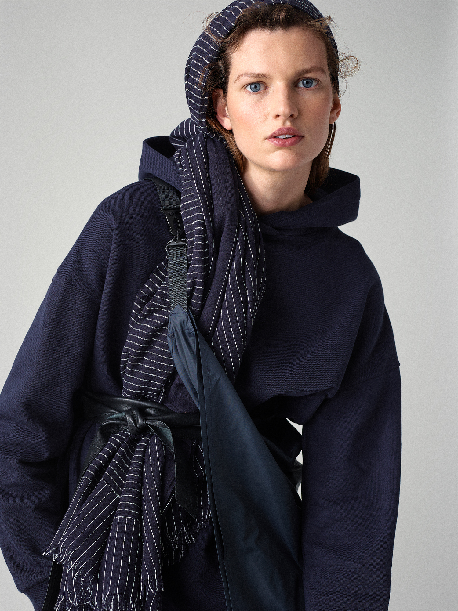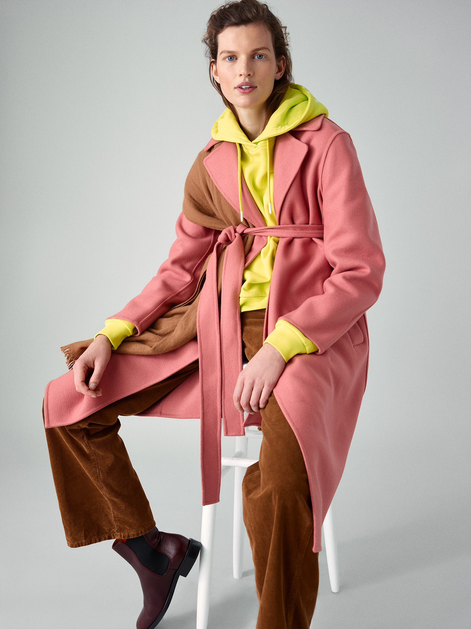 Bereits im Winter 2018 beobachteten wir die !Schal unter Gürtel“-Nummer – und Closed trägt den Styling-Kniff nun auch ins nächste Jahr. Funktioniert hervorragend zwischen den Saisons, wenn der Schal nicht mehr unbedingt schützend vor den Hals geknotet werden muss, es stattdessen reicht, dass unsere Schultern eine Extra-Portion Wärme abbekommen. Könnte im Alltag etwas unpraktisch sein, gerade wenn der nächste Toiletten-Besuch ansteht, aber was tut man nicht alles für einen pfiffigen Look, hmm? Sieh gut aus, wäre mir wohl aber zu unpraktisch. Nachmachen dennoch empfohlen!