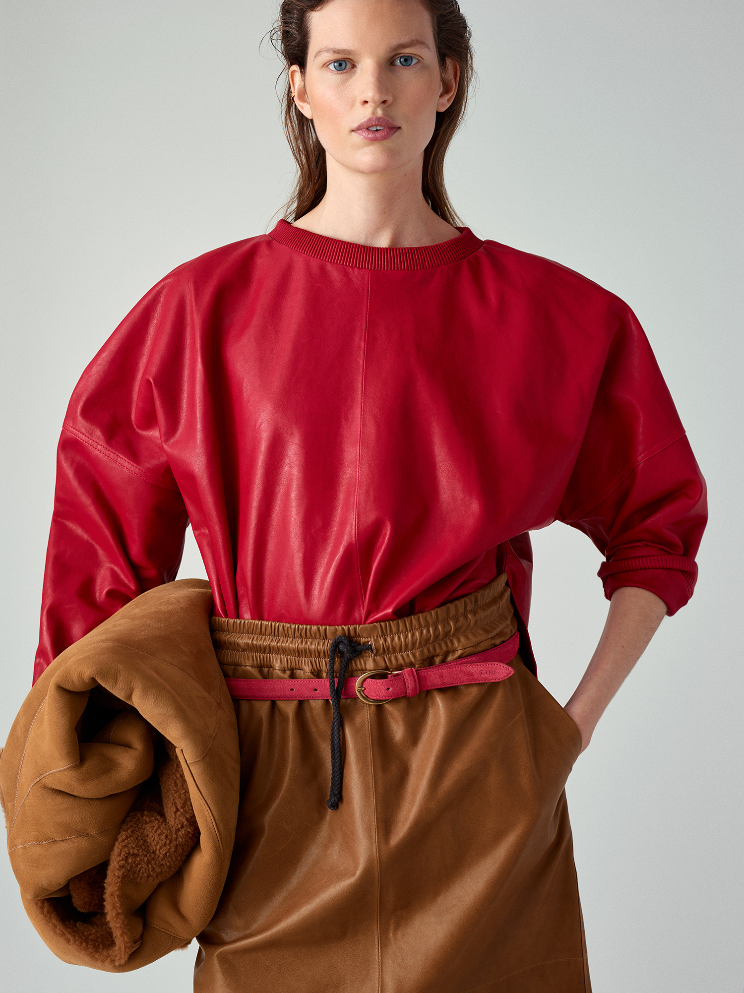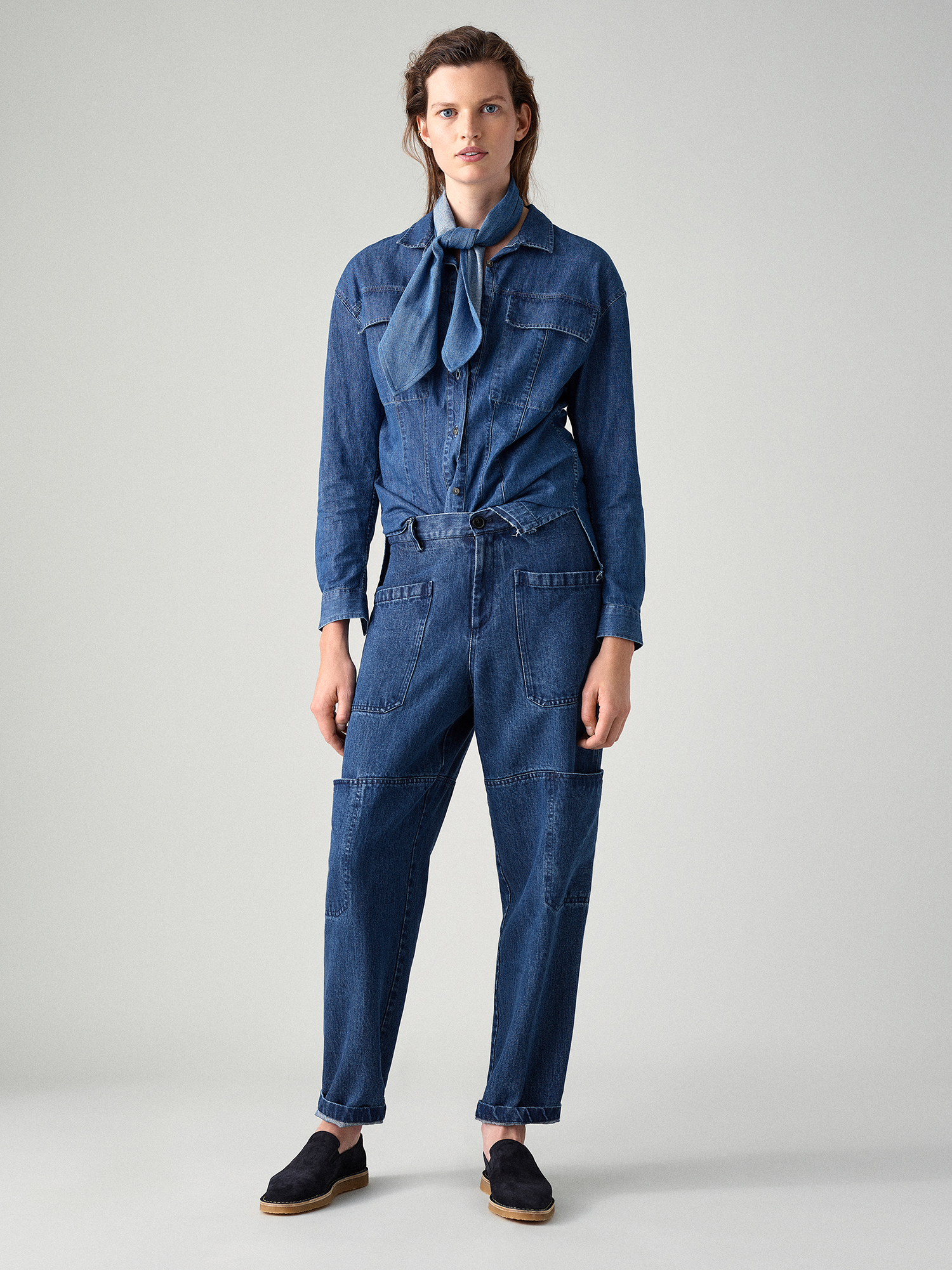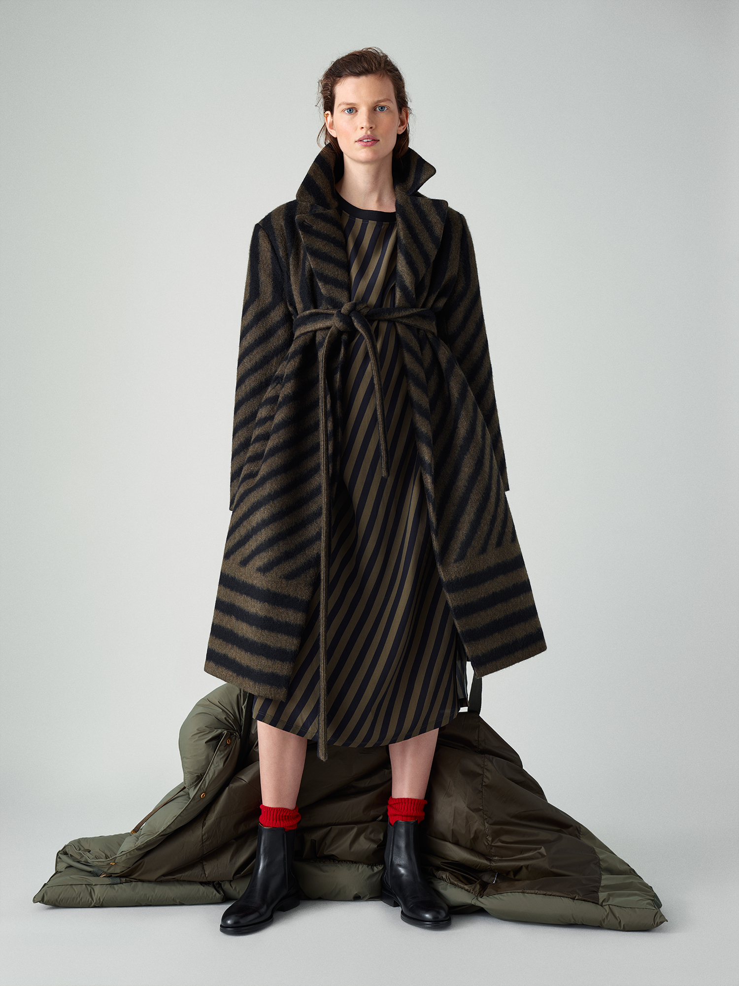 Bereits im Winter 2018 beobachteten wir die !Schal unter Gürtel“-Nummer – und Closed trägt den Styling-Kniff nun auch ins nächste Jahr. Funktioniert hervorragend zwischen den Saisons, wenn der Schal nicht mehr unbedingt schützend vor den Hals geknotet werden muss, es stattdessen reicht, dass unsere Schultern eine Extra-Portion Wärme abbekommen. Könnte im Alltag etwas unpraktisch sein, gerade wenn der nächste Toiletten-Besuch ansteht, aber was tut man nicht alles für einen pfiffigen Look, hmm? Sieh gut aus, wäre mir wohl aber zu unpraktisch. Nachmachen dennoch empfohlen!