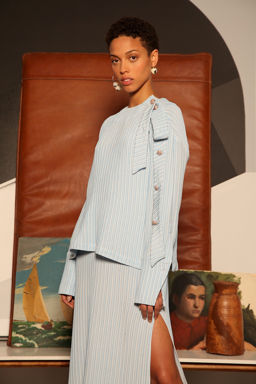 Na gut, streng genommen ist Sabinna ein Londoner Label und auch die Gründerin Sabinna Rachimova ist vielmehr in Österreich als in Deutschland aufgewachsen, aber an dieser Stelle erlaube ich es mir mal, ein wenig zu schummeln, das Spring/Summer 2019 Lookbook hat es mir nämlich ganz schön angetan. Die Designerin selbst hat am Central Saint Marints College of Art and Design studiert und anschließend für Christian Dior und Mary Katrantzou gearbeitet. Für ihre eigene Brand setzt sie auf Nachhaltigkeit: Alle Kleidungsstücke und Accessoires werden ausschließlich in Großbritannien und Österreich aus natürlichen Fasern wie Leine, Baumwolle und Wolle hergestellt. Bei der Produktion wird darauf geachtet, möglichst wenig Abfall zu produzieren, weshalb ein Großteil der Accessoires aus Resten der übrigen Kollektion hergestellt wird.