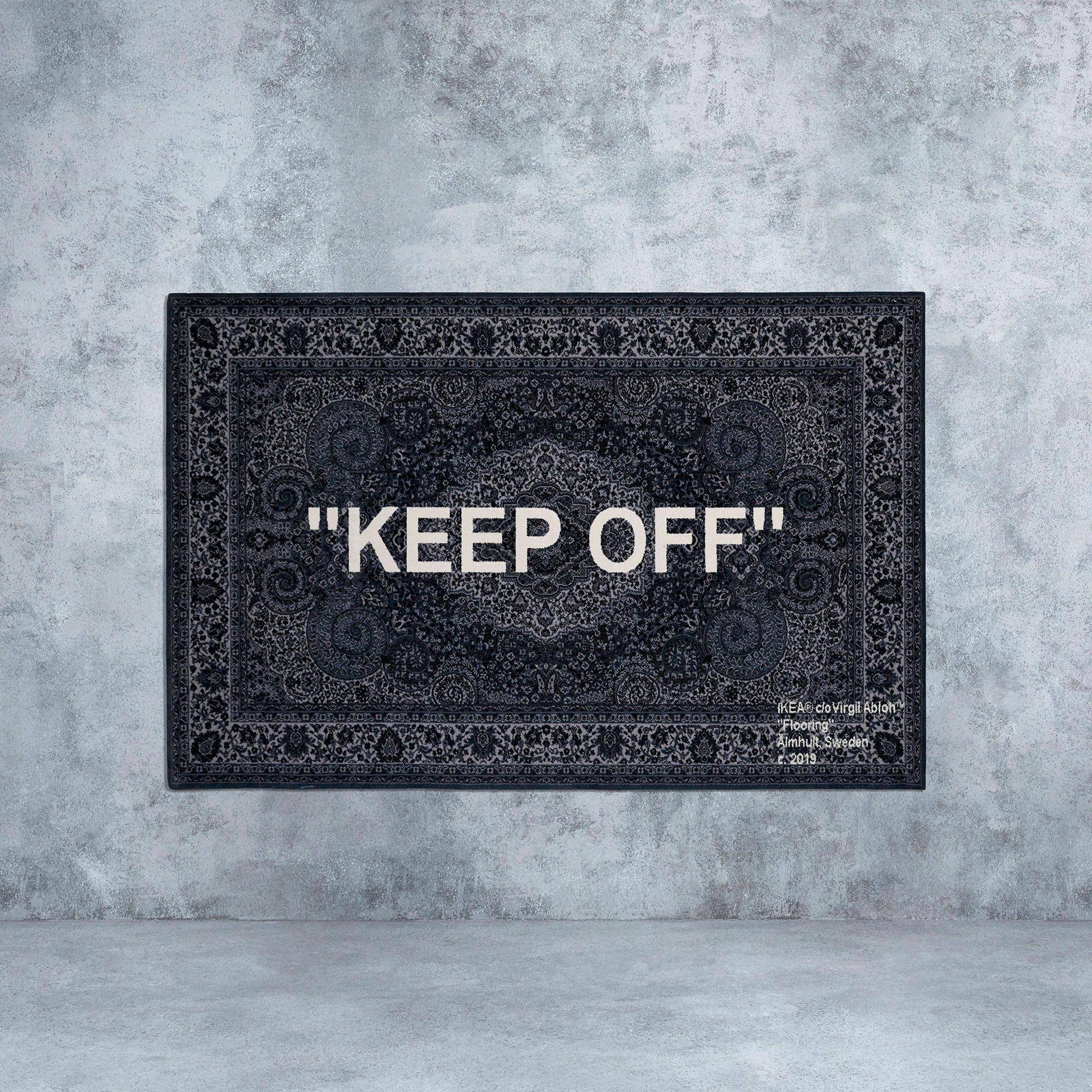 Nun gibt es auch bei uns in Deutschland eine kleine Chance auf ein Stück Abloh zum auf dem Boden legen, an die Wand hängen oder sich damit zudecken. Für das IKEA ART EVENT 2019 arbeitet das Einrichtungshaus jährlich mit zeitgenössischen Künstler*innen aus der ganzen Welt zusammen. Virgils Beitrag ist einer der Teppiche aus seiner Collection und die ironische Hommage an strenge Eltern, denen das Wohlergehen der Einrichtung über alles geht.