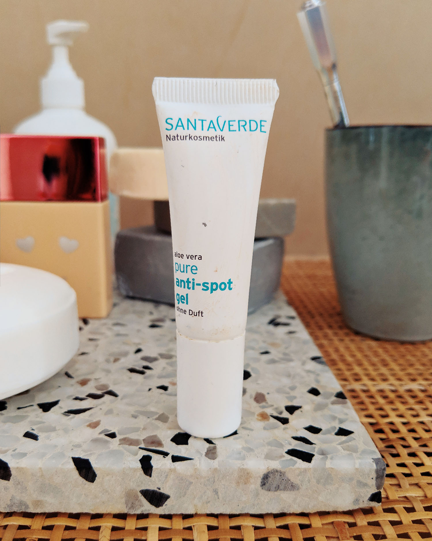 Es ist etwas passiert, dass ich selbst nicht für möglich gehalten habe: Ich konnte unserer Beauty-Chefin Ourania von einem Produkt überzeugen, das sie vorher noch nicht kannte! Die Rede ist von dem Santaverde Pure Anti-Spot Gel, das wie durch Zauberhand Pickel verschwinden lässt, Entzündungen in die Knie zwingt und aus Unebenheiten, ebenmäßige Flächen zaubert. Kein Scherz. Nur die Textur, die könnte etwas fester sein, aber das ist wirklich meckern auf hohem Niveau.