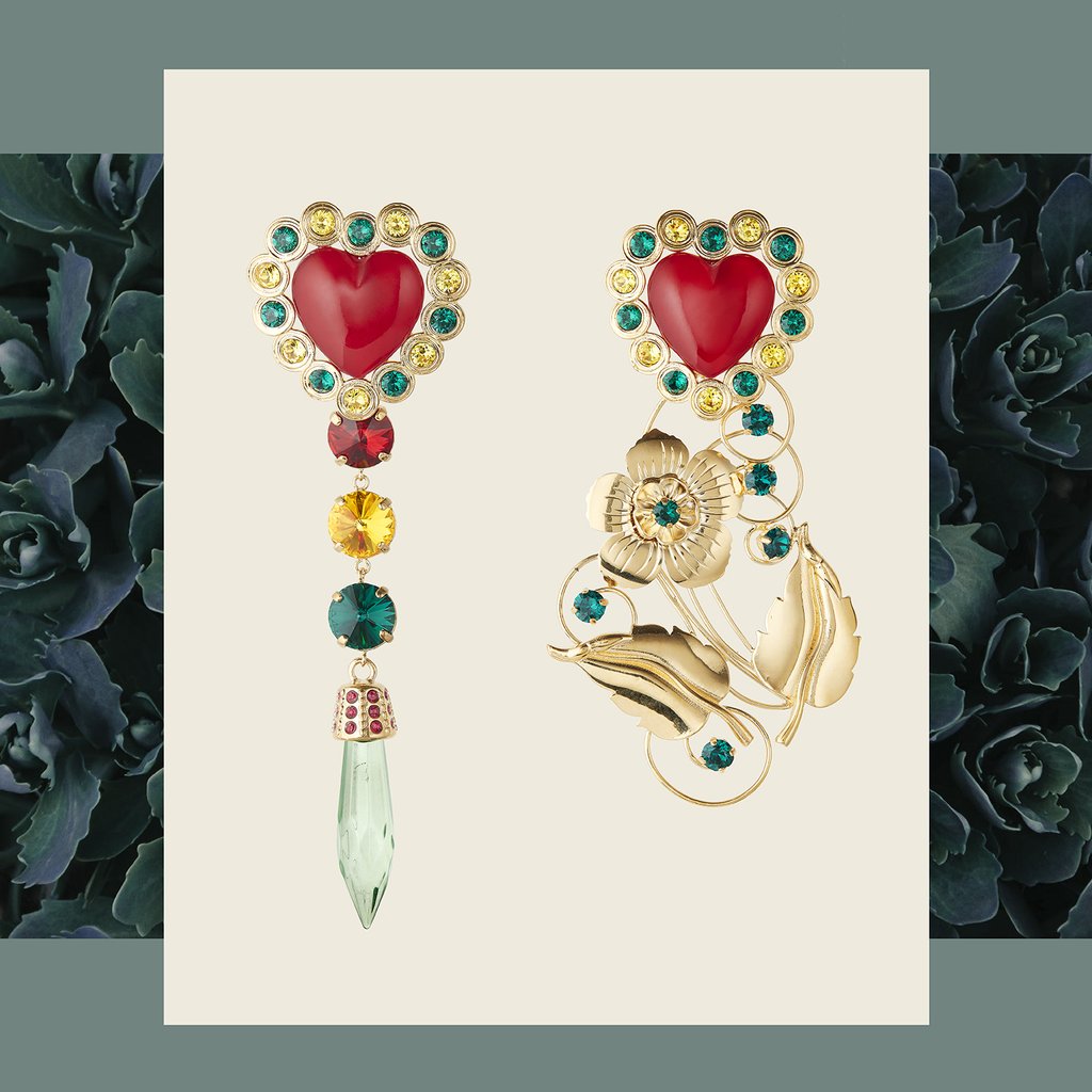Güldenen Ohrringen in überdimensionierten Formaten oder üppigen Ketten mit großen Schmucksteinen bin ich in der Vergangenheit stets aus dem Weg gegangen, manchmal habe ich sie sogar eiskalt belächelt. Zu sehr haben sie mich an jene Tanten erinnert, die immer ein bisschen zu viel nach starkem Parfüm gerochen haben. Geändert hat sich all das vermutlich erstmals mit Alessandro Micheles Antritt bei Gucci, denn seit im italienischen Modehaus mit Perlen behängte Mannequins über den Laufsteg schreiten, auf ihren Kleidern gestickte Blumenranken prangen oder ein einzelner Tiger über die seidenen Stoffe schleicht, möchte ich ganz plötzlich auch etwas von all diesem Kitsch, der mir mit einem Mal so tragbar erscheint. Ein von Kopf-bis-Fuß-Outfit ist mir bisher aber dennoch zu gewagt, vermutlich würde ich mich gar nicht auf die Straße trauen – ein bisschen meiner gemütlichen Komfortzone möchte ich mir schließlich noch erhalten.