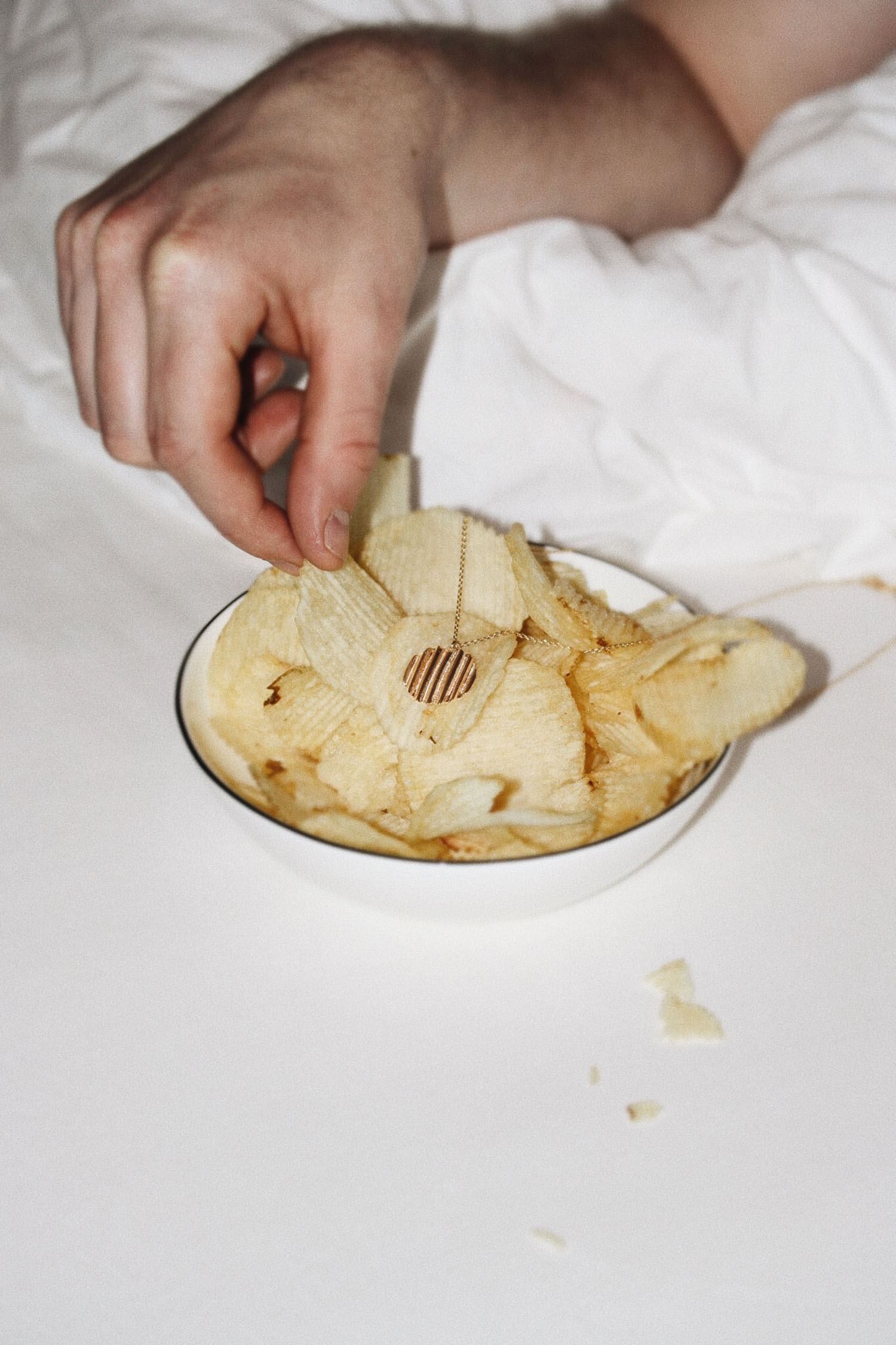 Chips wecken Kindheitserinnerungen an mit Freunden verbrachte Feste und nächtliche Sex and The City-Marathons. Chips gibt es an Geburtstagen und sie begleiten dich auf Ausflügen in den Wald. Sie spenden Trost nach einer Trennung und sind in guten wie in schlechten Zeiten für dich da. Die Kollektion wird ab diesem Freitag, den 26. April auf der Jukserei Webseite lanciert.