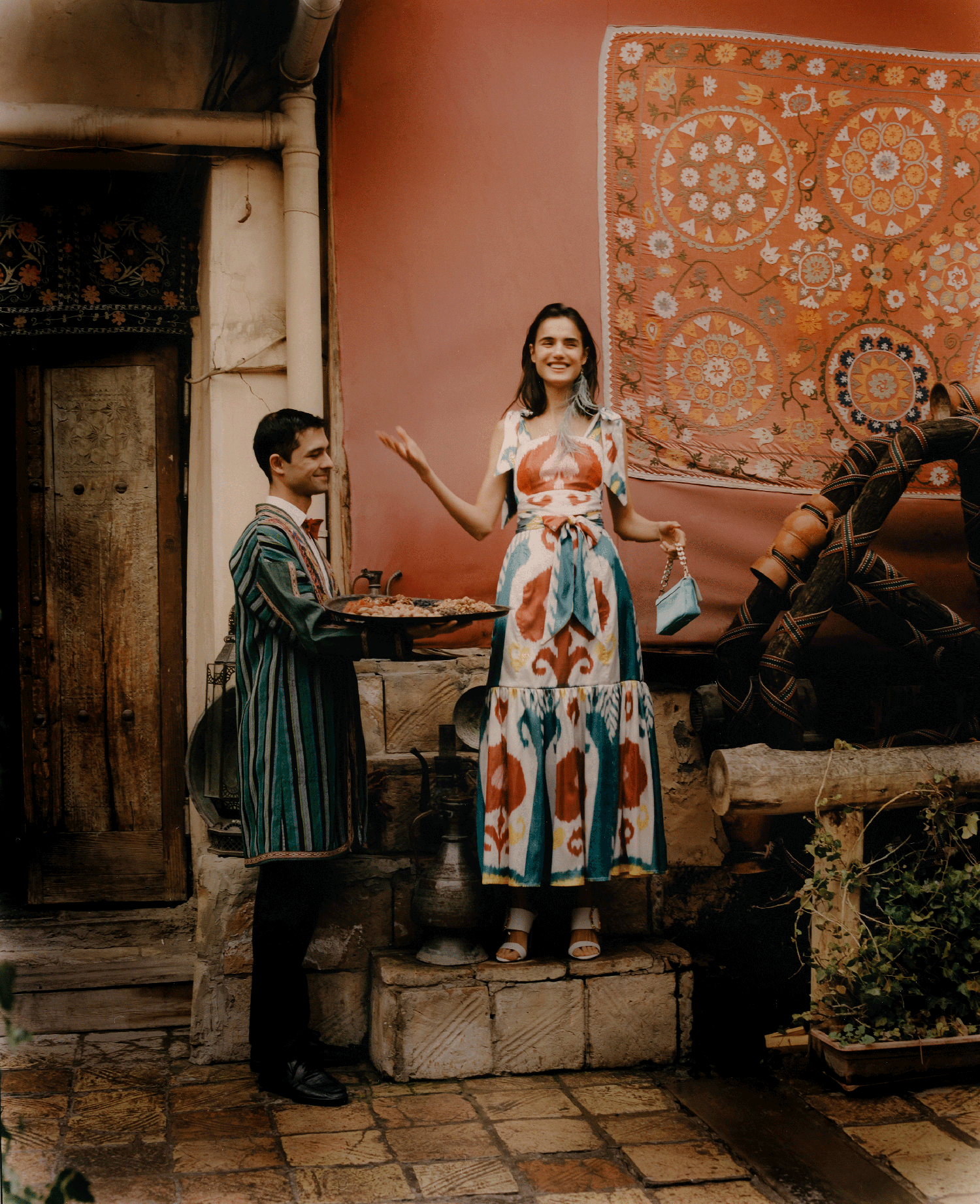In Afghanistan arbeitet EFI mit sechs Sozialunternehmen zusammen, darunter „Zarif Design“, dem Hersteller der Kollektion von Zazi x EFI. Zarif beschäftigt über 50 afghanische Mitarbeiter*innen, die die Kunst der „langsamen Produktion“ ausüben und traditionelle Seiden aus Afghanistan und Uzbekistan zu einzigartigen Kleidungsstücken machen. Jedes der Stücke trägt die Hoffnung auf Wiedereingliederung und Frieden in Afghanistan in sich, jeder Verkauf generiert angemessene Löhne und somit eine Existenzgrundlagen für migrierte Menschen, Rückkehrer*innen und Internally Displace People (IDPs), die am Produktionsprozess beteiligt sind.