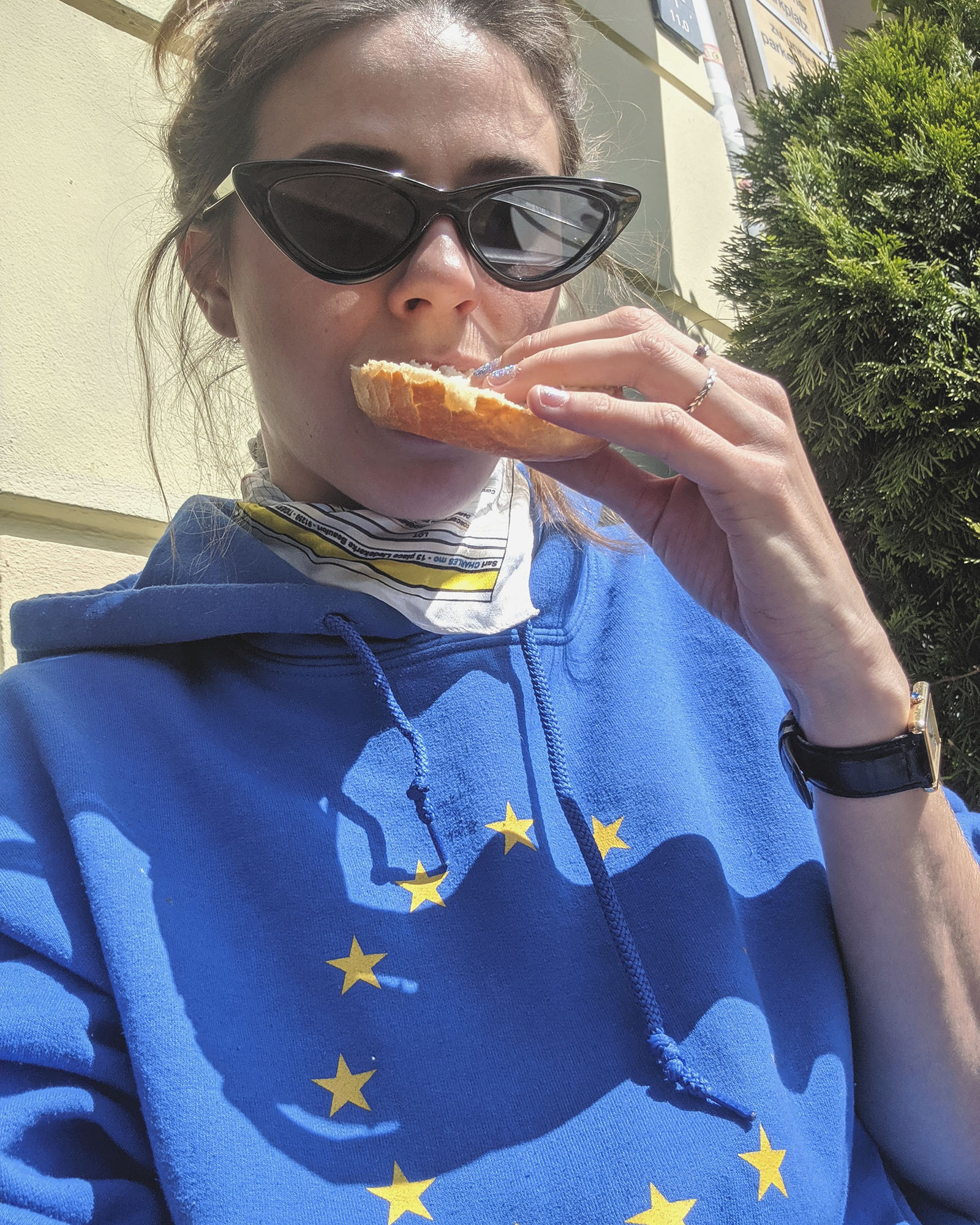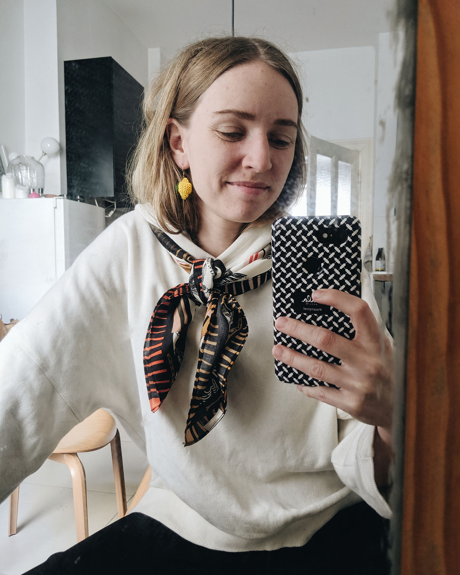 - Ohrringe von Folkdays x Jane Wayne, Hoodie von Edited the Label, Tuch von Scotch & Soda (ähnlich hier ), Hose von & Other Stories