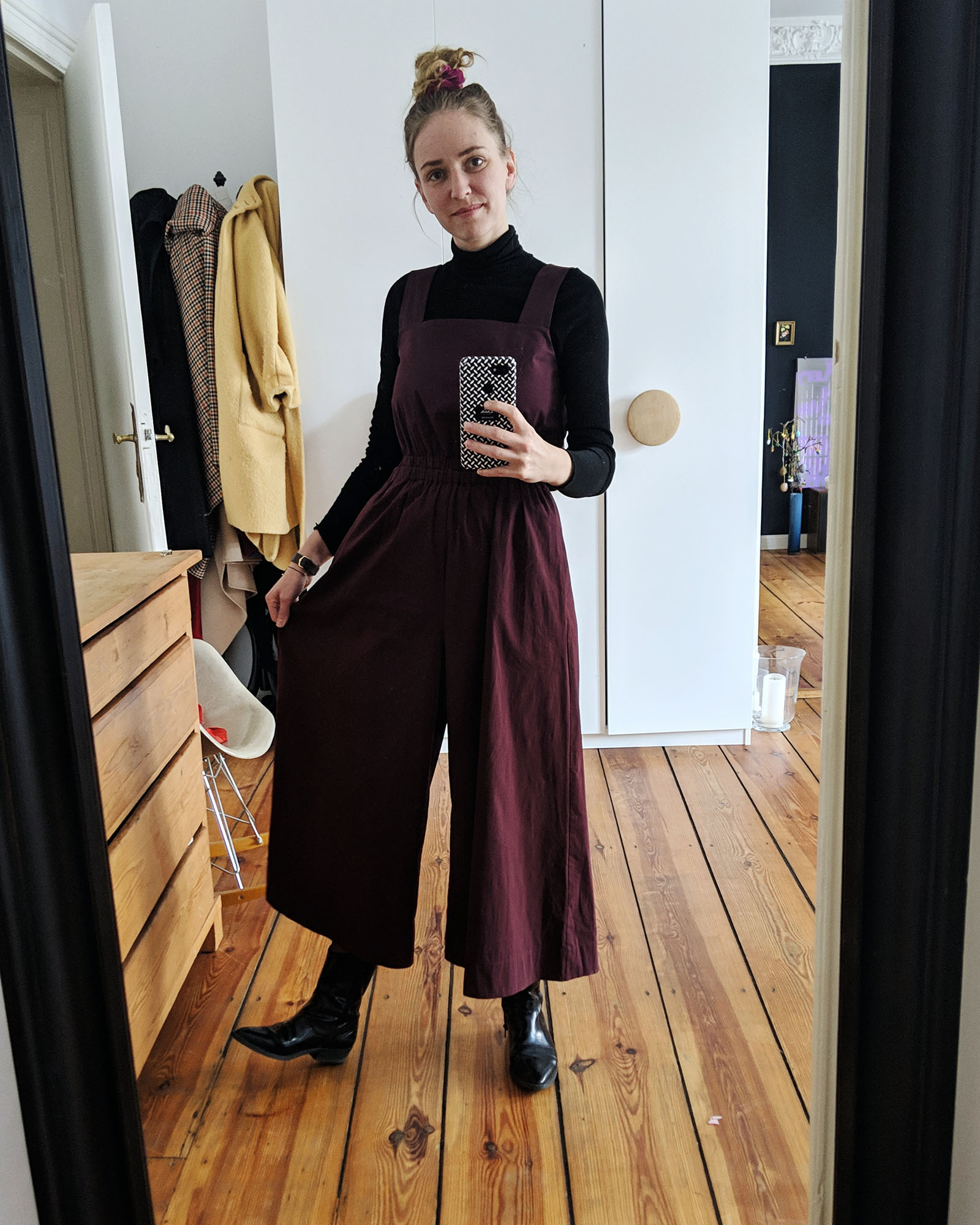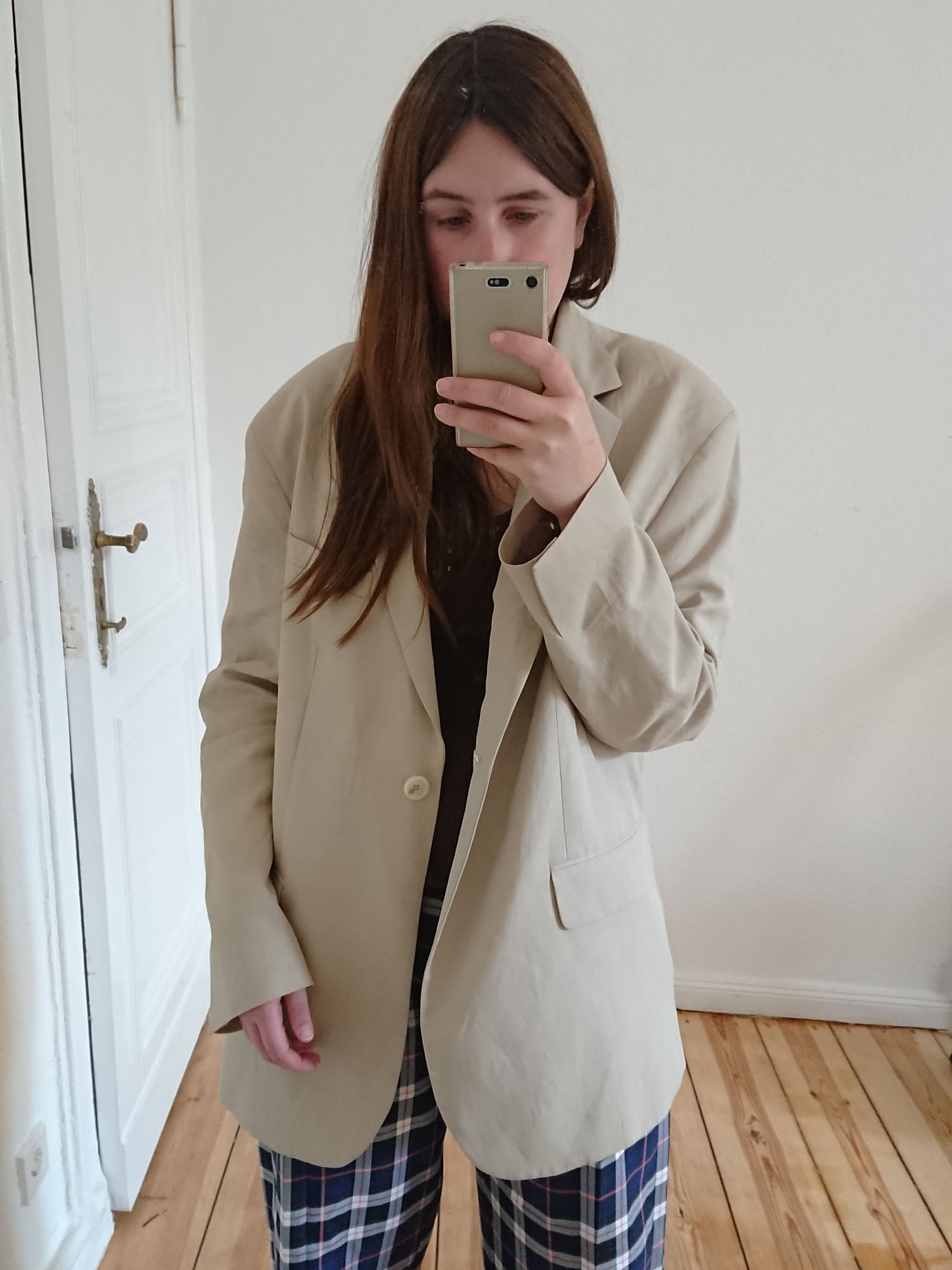 Ich möchte euch nicht an der Nase herum führen, deshalb muss an dieser Stelle gesagt werden, dass die von mir zusammen gepflückten Outfits nicht aus der letzten Woche, sondern aus vielen verschiedenen Wochen stammen. Weil mein Rücken mich kurzzeitig wieder außer Gefecht gesetzt hatte zum Beispiel, aber auch, weil ich es manchmal ziemlich Banane finde, meine Freundinnen zu fragen, ob sie womöglich kurz ein Foto von mir schießen können – obwohl wir gerade doch dabei waren, den gesammelten Texte von Madame Moneypenny zu bequatschen. Wir werden ja schließlich auch nicht jünger und so nervig Finanzen auch sind – abgesichert wäre ich dennoch gern, irgendwann. Ich lese gerade außerdem das Buch „Beyond Beauty“ um euch in den kommenden Tage mehr darüber zu erzählen. Denn auch bin nicht gefeit vor miesen Gefühlen in der Bauchgegend, während ich schillernde Instagram-Accounts durchstöbere oder mir ausmale, wie es wohl wäre und aussähe, jeden Tag Sport zu treiben. So sehr ich diesem Wort auch überdrüssig bin: Detox hilft. Ab sofort verbiete ich mir mein Handy im Bett. Auch, damit ich endlich wieder mehr Schlaf abbekomme statt mir den Kopf etwa darüber zu zerbrechen, weshalb sich immer noch so viele Menschen weigern, sich als Feminist*innen zu bezeichnen. Die Direct Massages, die ich zu besagtem Thema eigentlich am laufenden Band erhalte, sprechen da nämlich Bände.