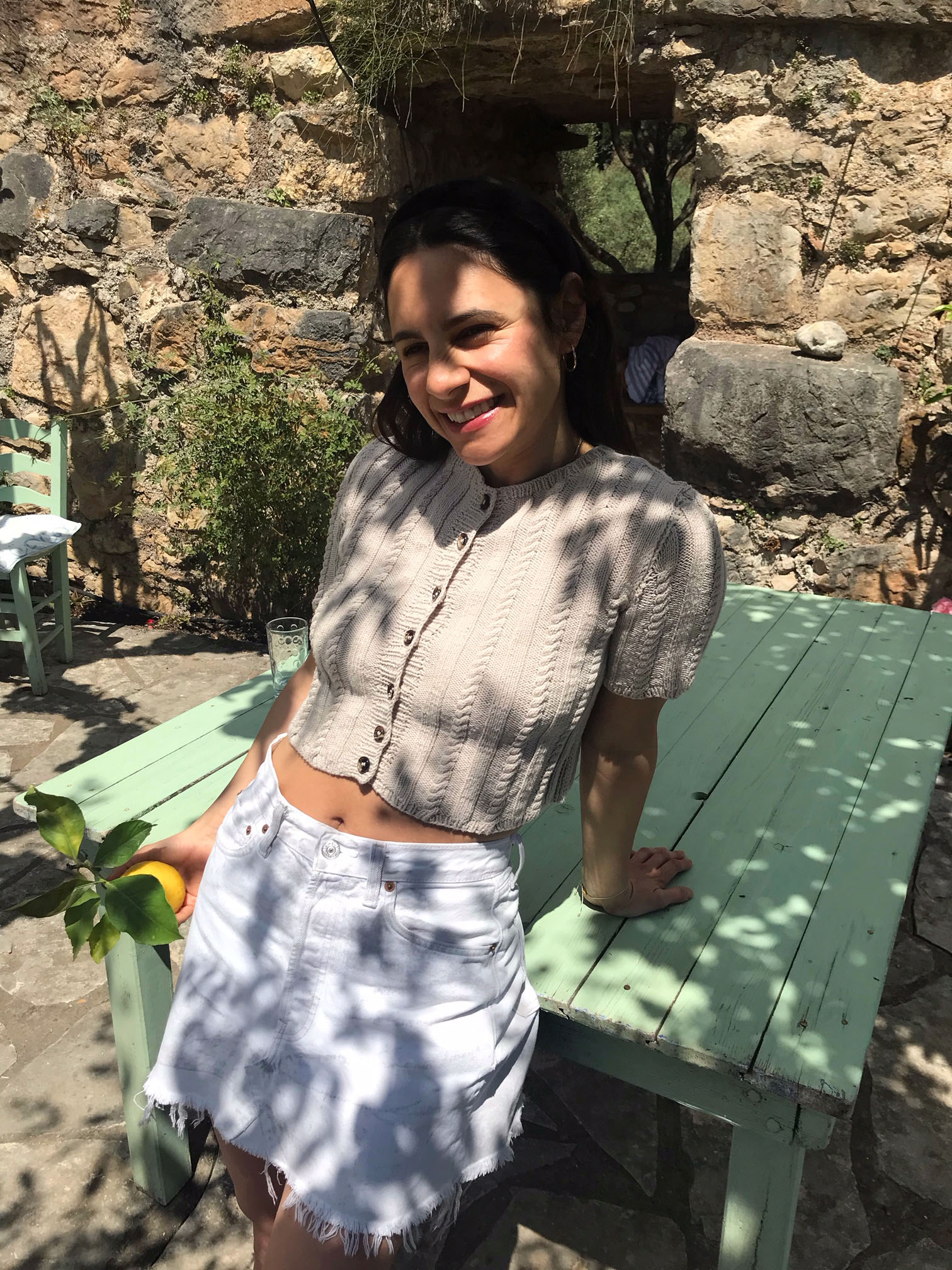 - Kurze Strickjacke (von meiner Mama genäht), Rock aus einer alten Levis Jeansselbstgenäht