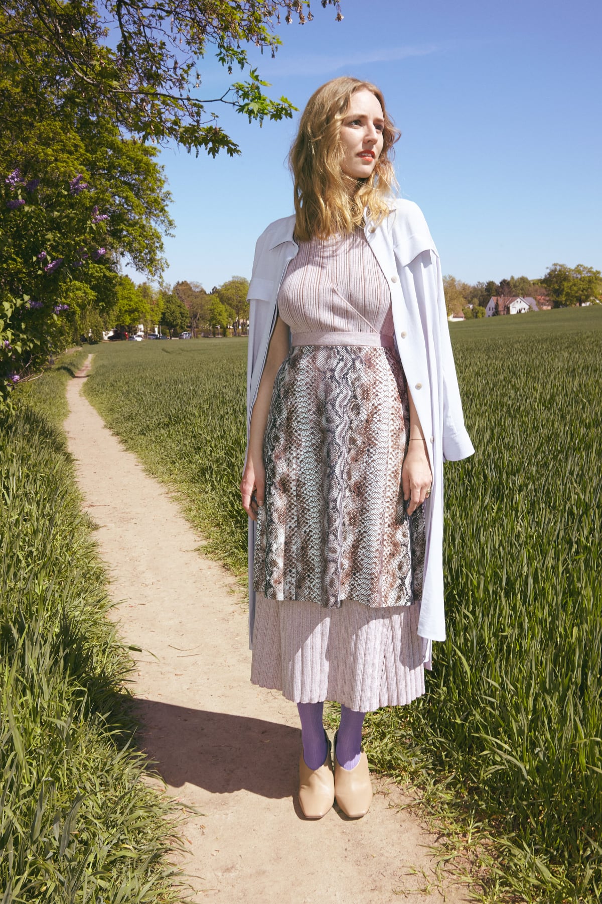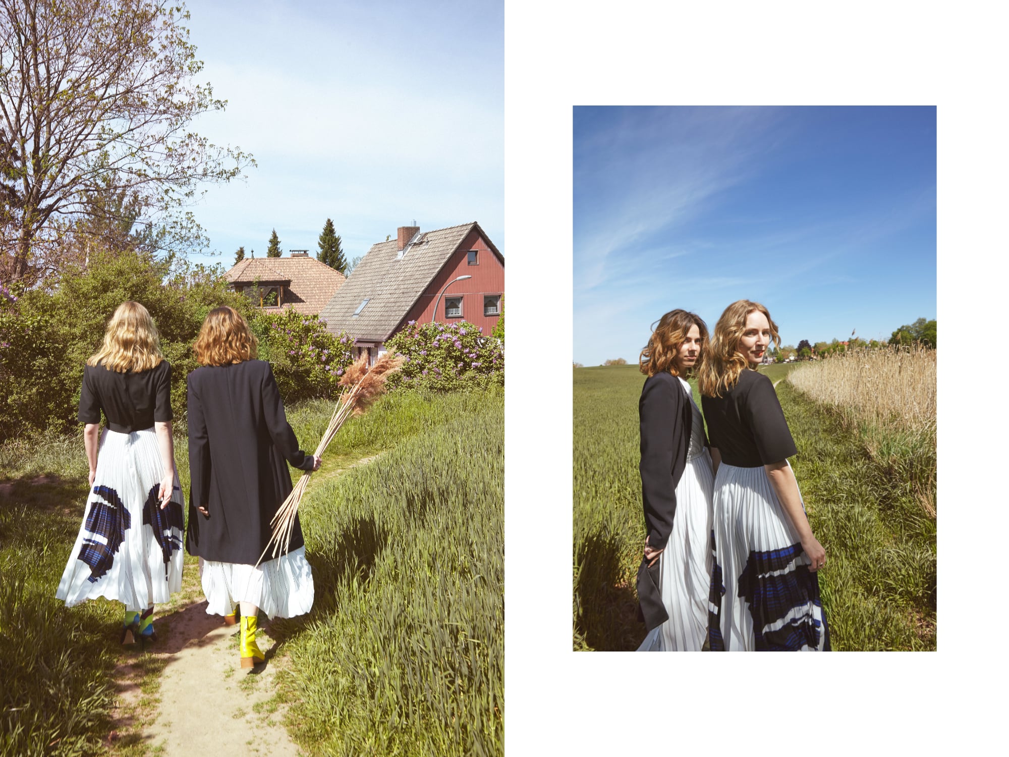 Und so zogen wir also aus, mit der wunderbaren Daniela Müller-Brunke und ihrer Kamera an unserer Seite, um Boss mit dem Grün des Märkischen Viertel Berlins zu vermählen. Während ich mich seither frage, weshalb ich noch nie auf die Idee gekommen bin, mir einen Anzug im Safari-Look anzuschaffen, ist Sarah einem Overall auf den schönen Leim gegangen, der mit seinen kurzen Beinen ganz subtil aus der Reihe tanzt, auf die beste Art und Weise.