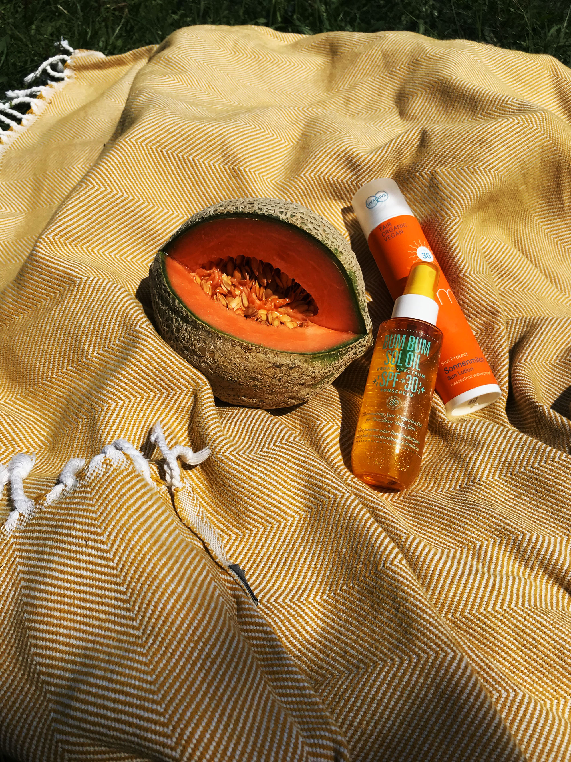 Was passt besser zusammen, als Sommer, Sonne und Musik? Naja vielleicht noch ein paar Freund*innen, ein paar Drinks und gute Laune. Das Sonnenöl von Bum Bum mit Lichtschutzfaktor 30 passt hier perfekt rein, denn es riecht unwiderstehlich nach gesalzenem Karamell und Pistazie und enthält Glitzerpartikel! So schimmert die Haut bei jedem noch so winzigen Sonnenstrahl, der sie trifft. Wenn euch Öl einen zu geringen Schutz bietet, könnt ihr es so wie ich machen und euch erstmal mit normaler Sonnencreme einschmieren und dann das Öl als Finish verwenden.