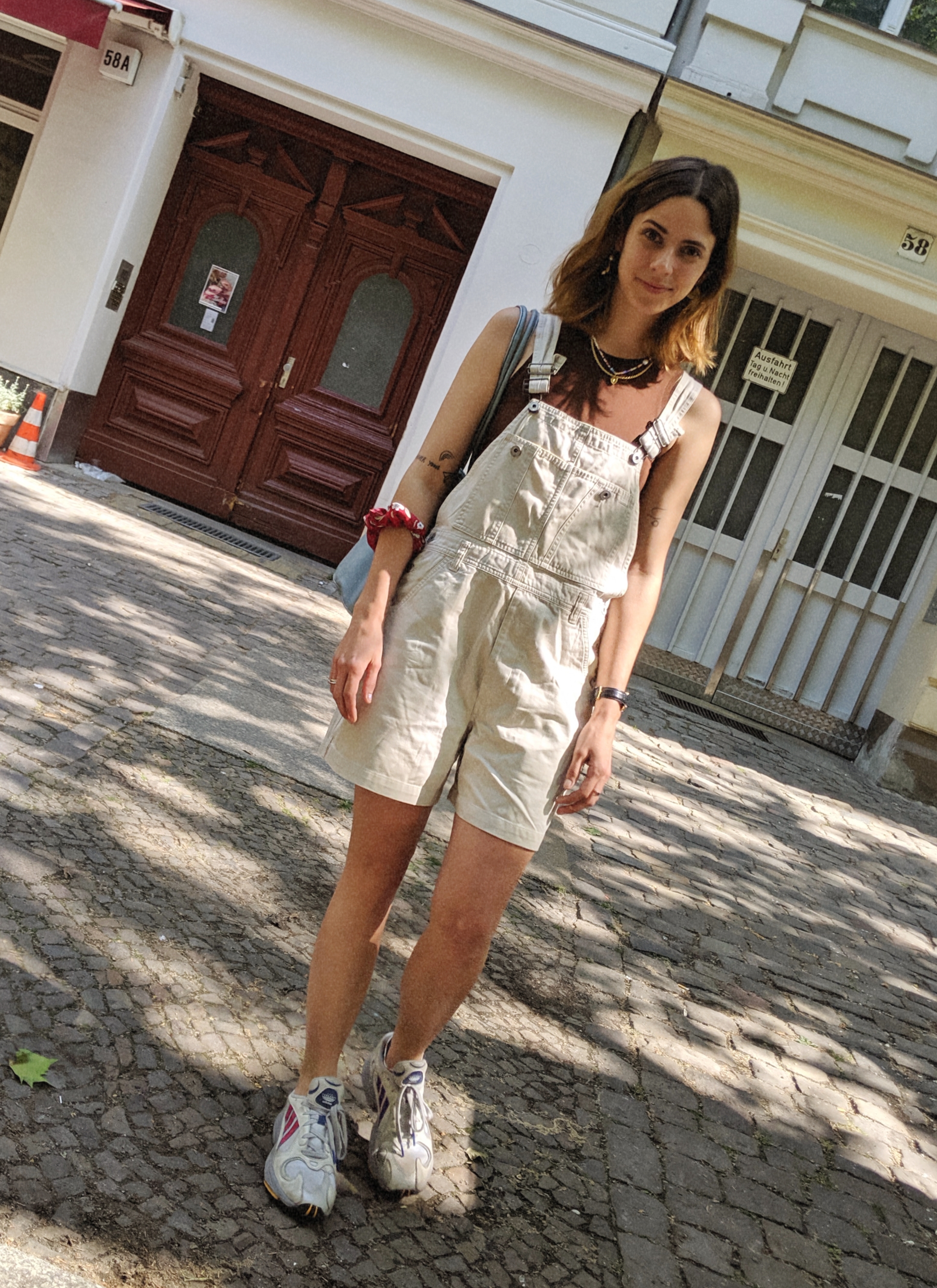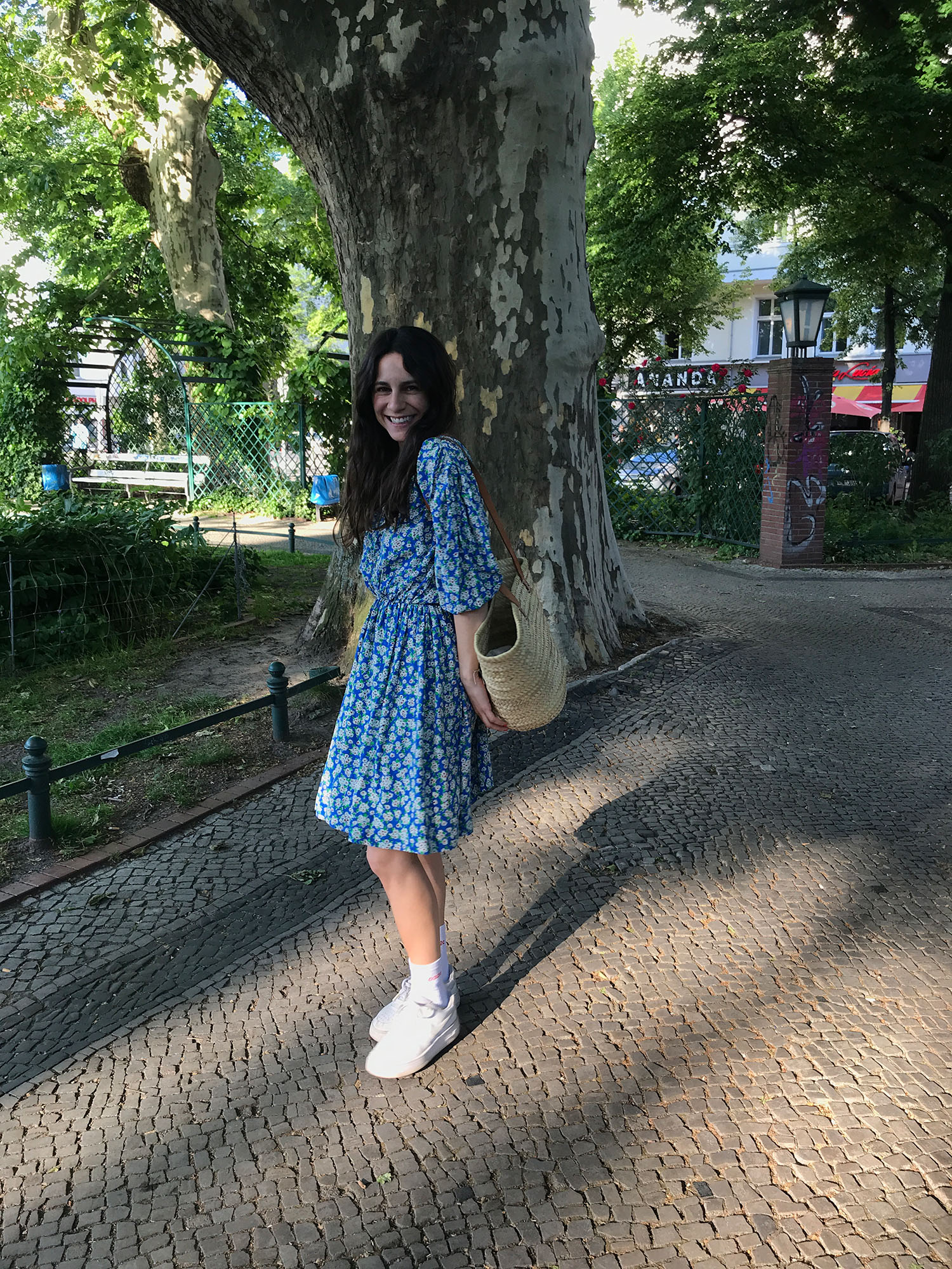 Schon seit Februar brennt es mir unter den Fingernägeln und endlich ist die schönste Zeit des Jahres da! Es ist Sommer und das mit Karacho! Gestern war für mich der perfekte Tag, es war richtig heißer Tag, dann am Abend ein kurzes Wärmegewitter und in der Nacht dann ein frischer Wind. Hmmmmm. Wenn ich die Bilder für unsere wöchentliche Outfitspost mache, denke ich jedes Mal oh! du hast ja schon wieder dasselbe an! Irgendwie ziehe ich entweder eine Jeans und schlichtes T-Shirt aus meinem Schrank oder ein Kleidchen. Die Kleidchen kaufe ich auf Flohmärkten und in Secondhandläden. Ich mag ein leicht kitschigen, verspielten Style bei Kleidern und da ist die Auswahl in Berlin wahrlich groß. In Kombination mit luftgetrocknetem Haar, wild und wellig und Sneakern rundet das den Look für mich ab. Ach ja goldene Kreolen und meine Ketten, die ich niemals ausziehe.