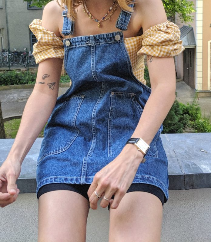 Ehrlich gesagt bin ich während der vergangenen Woche ein bisschen träge durch die Tage geschlurft und jetzt, nur ein Wochenende später, ist mir außerdem aufgefallen, dass sich anhand der gewählten Garderobe außerdem eine leichte Early Crisis erkennen lässt – Latzkleid und Latzhose habe ich glaube ich genau so schon zu Abizeiten und später dann auch im Studium getragen. Weiterentwicklung? Nein, danke – es ist gerade doch alles so schön. Nach einer gediegenen Brotzeit-Phase zieht jetzt nunmal ein mittelwilder Sturm auf, der mich wieder viel regelmäßiger ins lang vermisste Nachtleben weht. Oder eben auch an den See – auch dann, wenn zu Hause eigentlich ein Berg an Bürokram und Wäsche nach mir ruft.