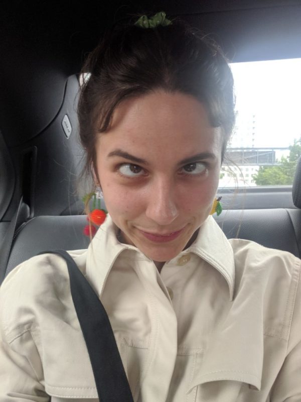 Jacke von Acne Studios, Ohrringe von Jane Wayne x Folkdays (Kirschen hier, Zitrone hier, Orange hier)