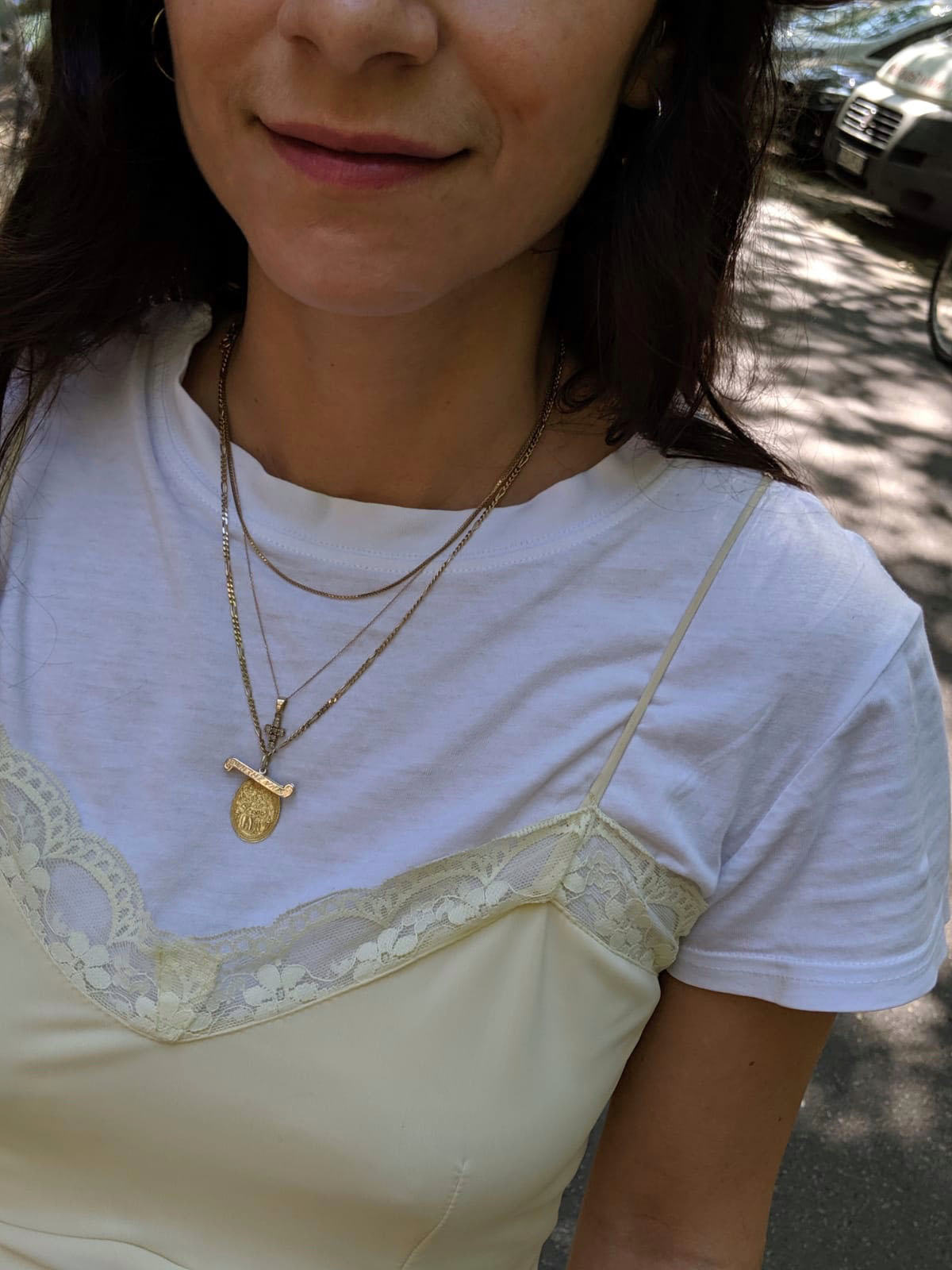 Kleid (Nachthemd) vom Flohmarkt, T-Shirt von & Other Stories