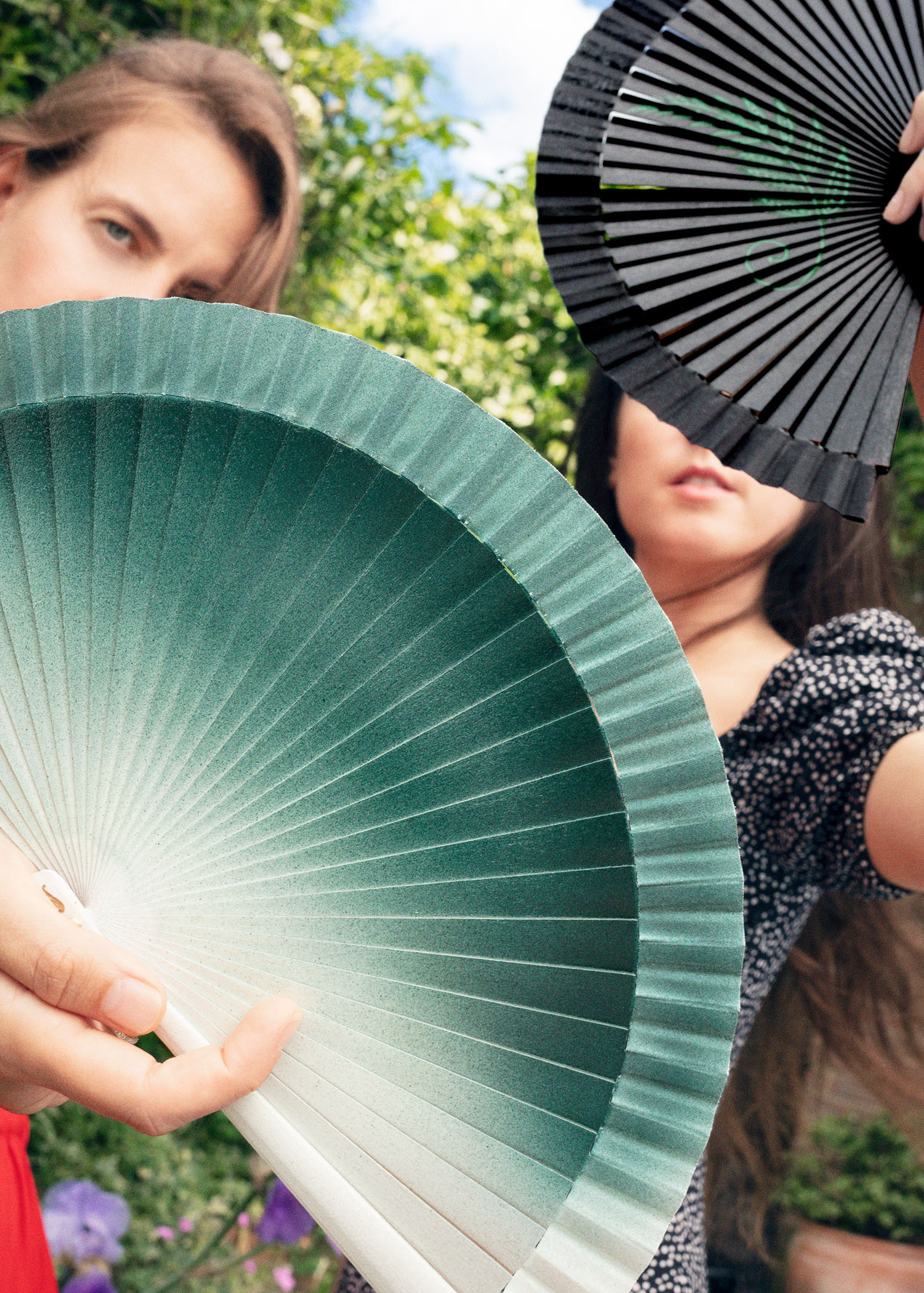 Hinter Fern Fans stehen die beiden Kreativ-Direktorinnen Daisy Hoppen, eine in London ansässige PR-Agentur Gründerin, und die in Kopenhagen lebende Textildesignerin Amanda Borberg. Wie die Zwei darauf kamen, sich Fächern zu widmen? Ein besonderes Foto mit Fächer von Karl Lagerfeld inspirierte die beiden Freundinnen zur Gründung ihres eigenen Brands, wirklich wahr.
