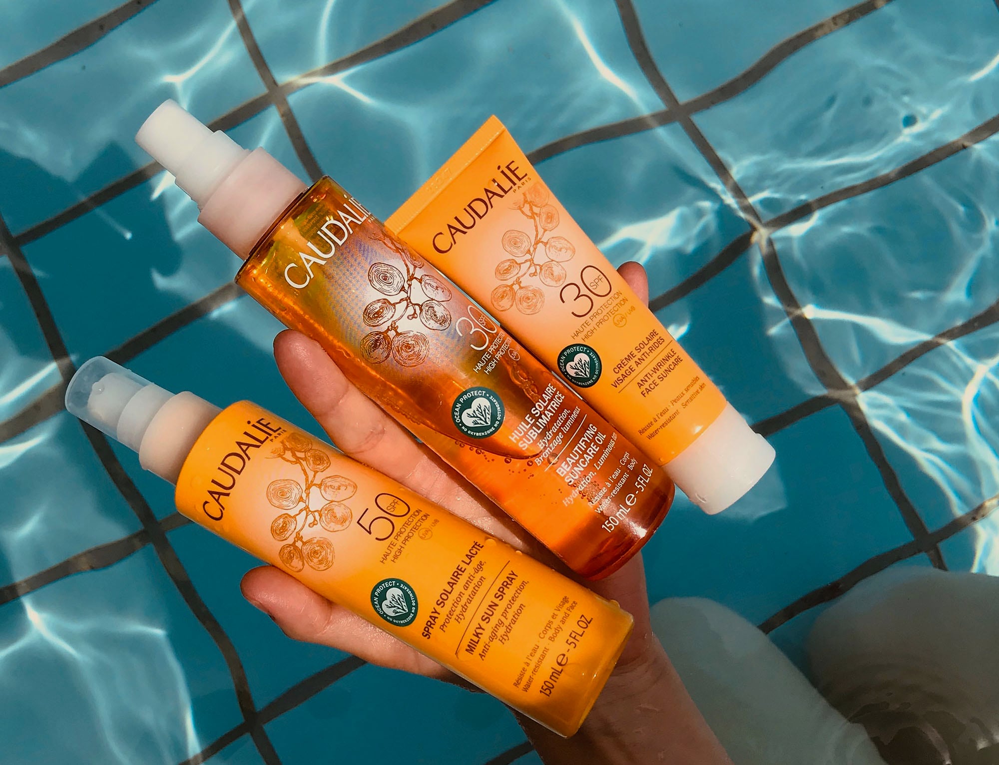 Hört sich so einfach an, dahinter aber stecken tatsächlich viele Jahre der Forschung. Erst wenn ein Produkt den Ansprüchen von Gründerin Mathilde Thomas mit ihrem Mann Bertrand standhält, gelangt es auf den Markt. Das ist seit der Gründung Caudalies im Jahr 1995 so, und gilt als unumstrittenes Versprechen der 100prozentig unabhängigen Kosmetikmarke aus Bordeaux, einem Gebiet, das vor allem für seinen Weinanbau bekannt ist, deren Lage aber auch für viele der Inhaltsstoffe von Caudalie verantwortlich ist. Vor allem die wohltuende Wirkung der Weinrebe und der Weintraube wird immer wieder eingesetzt und so findet selbstverständlich auch das biologische Weintraubenwasser und Traubenöl Verwendung in der neuen Sonnenschutz-Linie. Und genau der wollen wir uns jetzt Produkt für Produkt widmen.