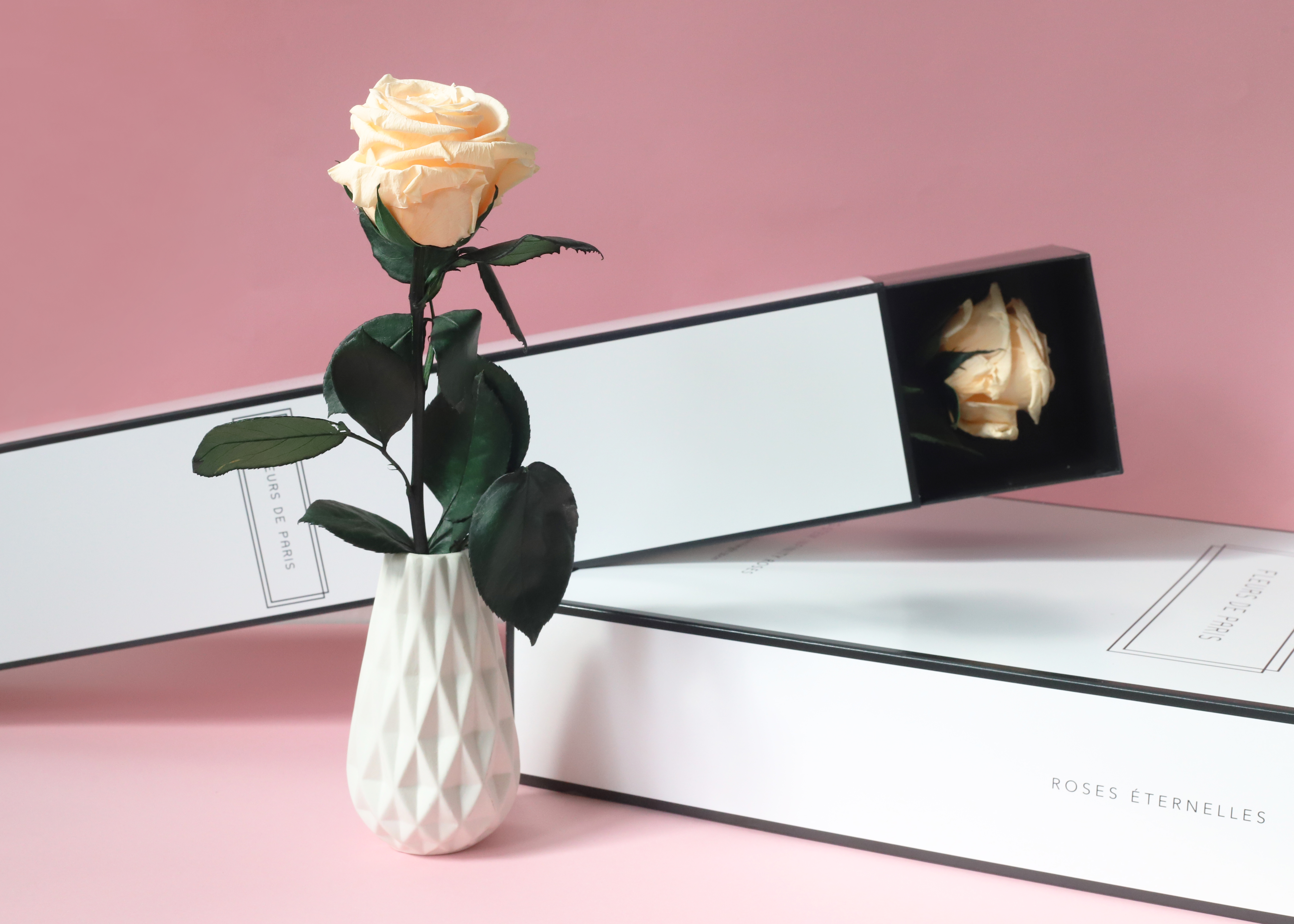 Eigentlich ist Fleurs de Paris ja für jene konservierten Rosen bekannt, deren Stiele nicht sichtbar in hübschen Boxen verschwinden. Jetzt aber präsentiert das Blumenlabel erstmals langstielige Rosen, die nicht nur als Strauß, sondern auch als Einzelblüte erhältlich sind. Bei trockener Raumluft halten die Blumen mindestens drei Jahre lang – auch bei all denen, die sich sonst mit Pflanzen schwertun. Die Kollektion ist ab sofort auf der offiziellen Webseite sowie den Concept Stores in Berlin, Düsseldorf, Hamburg, München und Wien erhältlich.