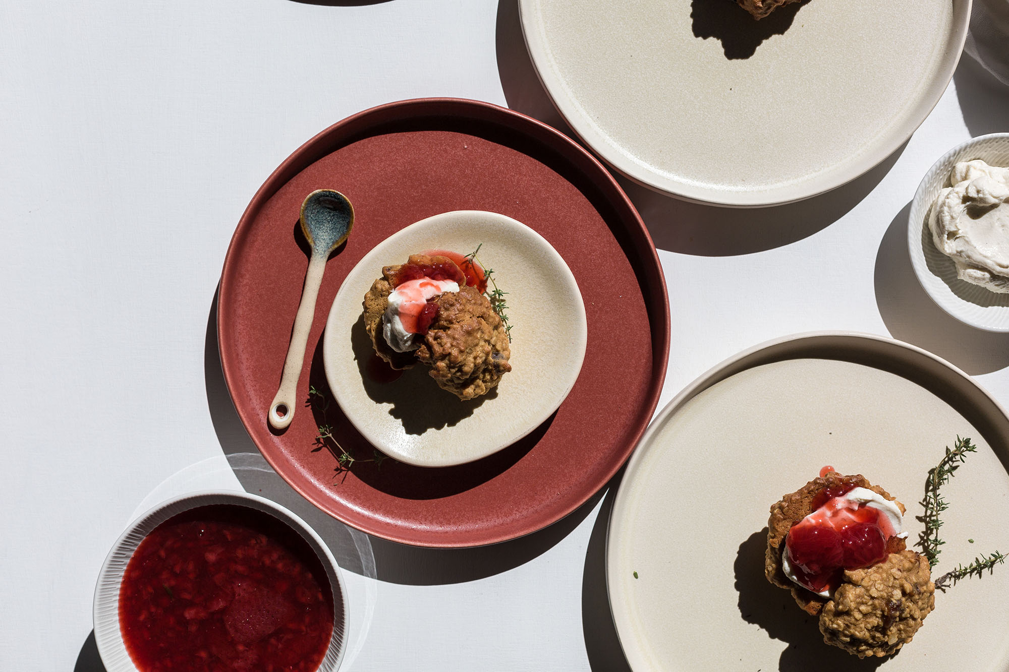 Haferkekse mit Vanille-Labneh und Erdbeerkompott