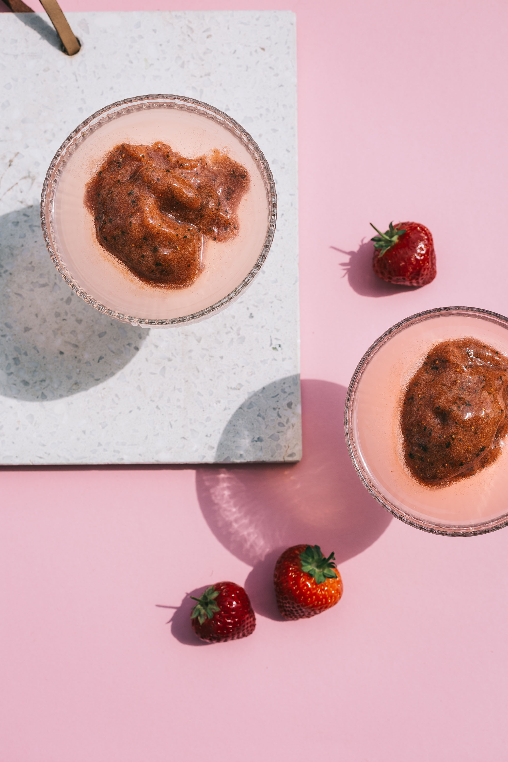 Erdbeer-Basilikum-Sorbet mit Tonicwasser
