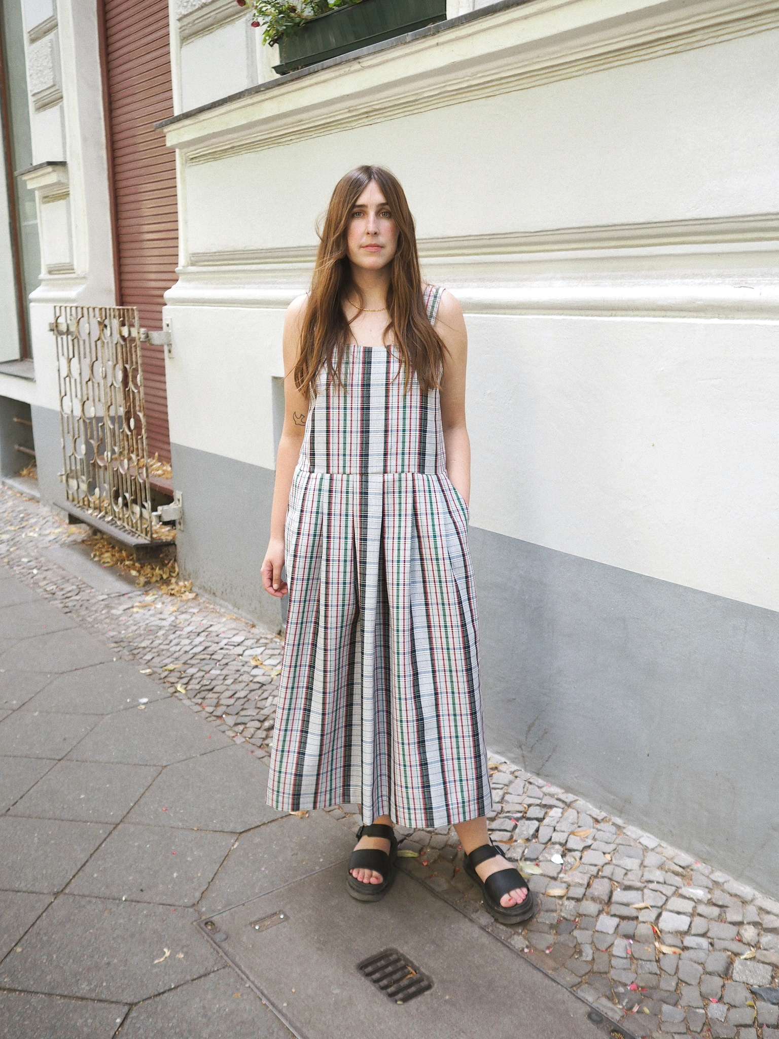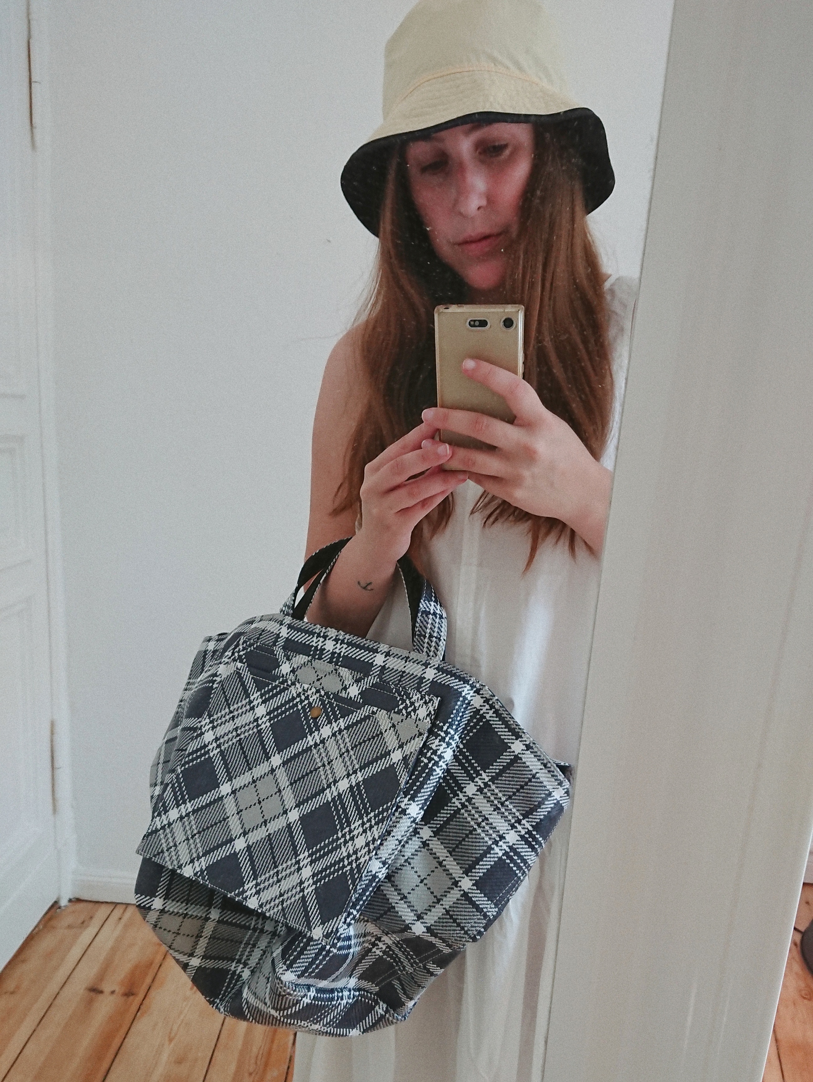 In diesem Sommer habe ich mich neu verliebt, in alte Bücher, in Kleider und in Abende auf dem Balkon, die in Wein getränkt sind, gespickt mit langen Unterhaltungen ohne tieferen Sinn. Mein vergangenes Wochenende war – neben alltäglichen Erledigungen – also vollgepackt mit all diesen Dingen, die ich jetzt noch mehr zu schätzen weiß. Getragen habe ich mein derzeit liebstes Kleid, ein Sale-Fund von Shrimps, dessen eingenähte Bluse ich ganz mutig (und ohne Unfälle) herausgetrennt habe. Und auch sonst bestand meine Garderobe vermehrt aus Kleidern, weil sie sich so leicht tragen lassen, ganz ohne Kopfzerbrechen oder irreführende Kombinationsmöglichkeiten. Überhaupt bin ich mir sicher, künftig auch bei kühleren Temperaturen vermehrt zum Kleid zu greifen, dann eben mit einer Bluse oder einem Rollkragenpullover darunter – bei den angekündigten 34 Grad der kommenden Tage möchte ich daran aber lieber noch gar nicht denken.