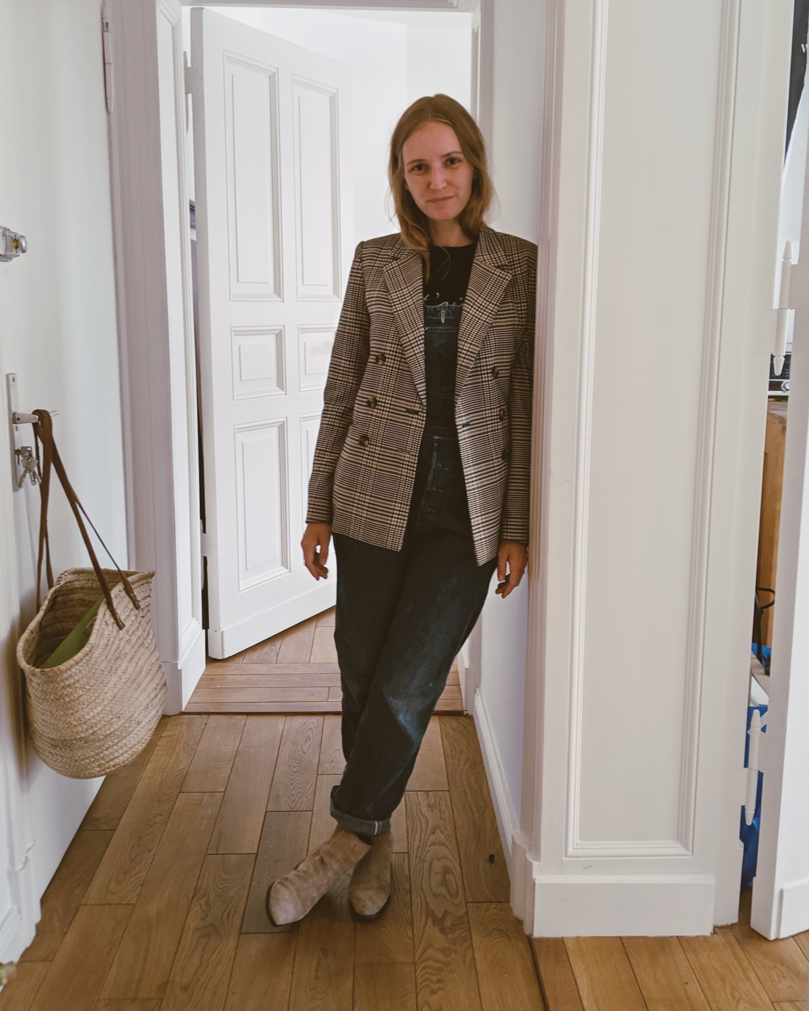 Latzhose von Levi’s Vintage (alt), Pulli von Bella Freud (alt), Blazer von & Other Stories, Boots von Aeyde