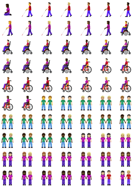 Die Emojis werden diverser und inklusiver – und das wurde auch Zeit. Zwar leidet die Übersichtlichkeit der kleinen Icons zunehmend, für mehr Varianz und Offenheit sind wir aber dennoch schwer dankbar. Was uns im Herbst bei unserem Update erwartet? Menschen im Rollstuhl, Paare verschiedenster Konstellationen, Arm- sowie Beinprotesen und aufgeschnittene Butter. Richtig gehört, auch die banalen Dinge des Lebens finden natürlich statt.