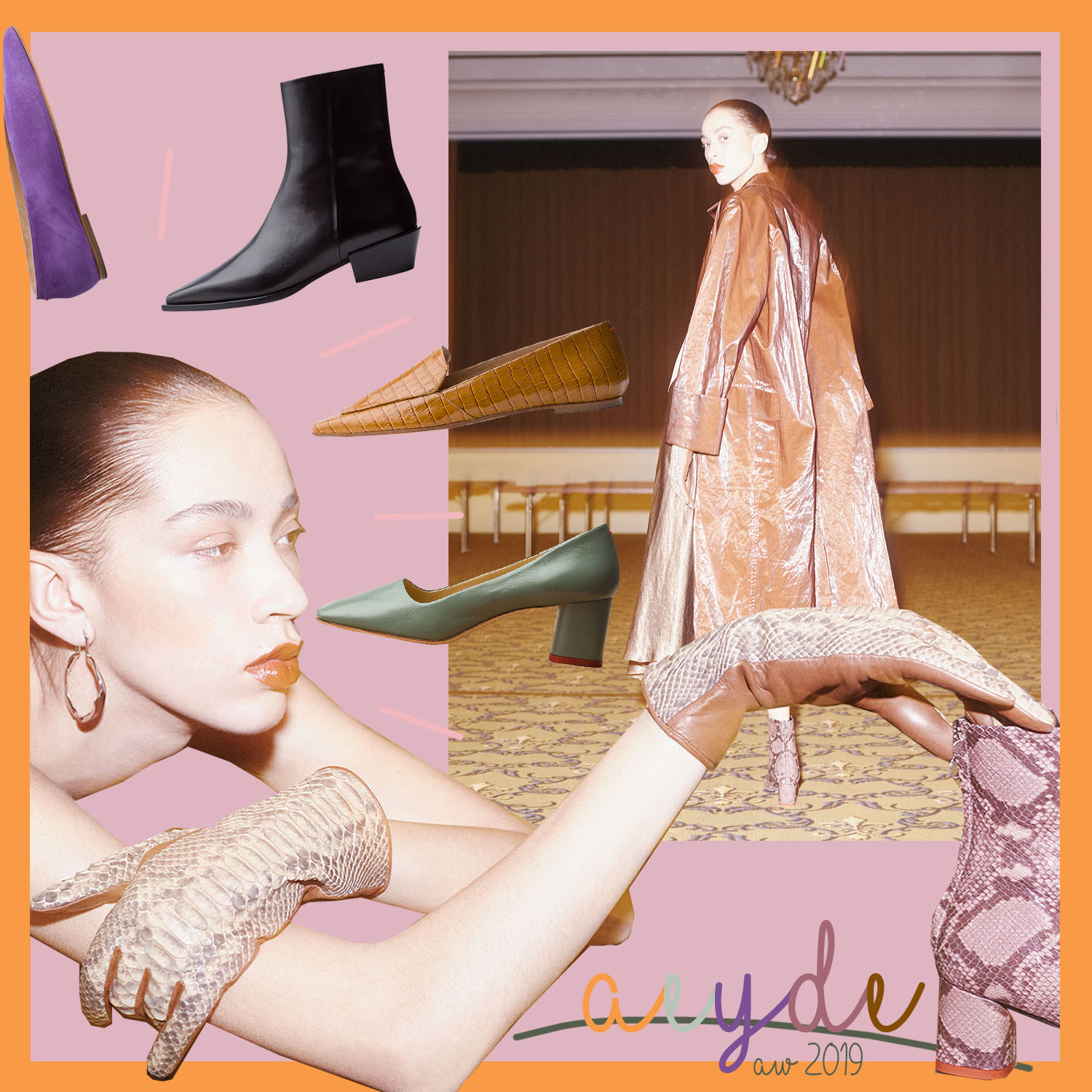 Eines steht fest: aeyde ist erwachsen geworden und weiß genau, wie es die Füße der #aeydelady glücklich machen kann: Mit rosafarbenem Python-Print, Carrée-förmigen Pumps in French Green, Loafern in Ocker und den schönsten Boot-Varianten, diesmal sogar in flacheren Varianten.