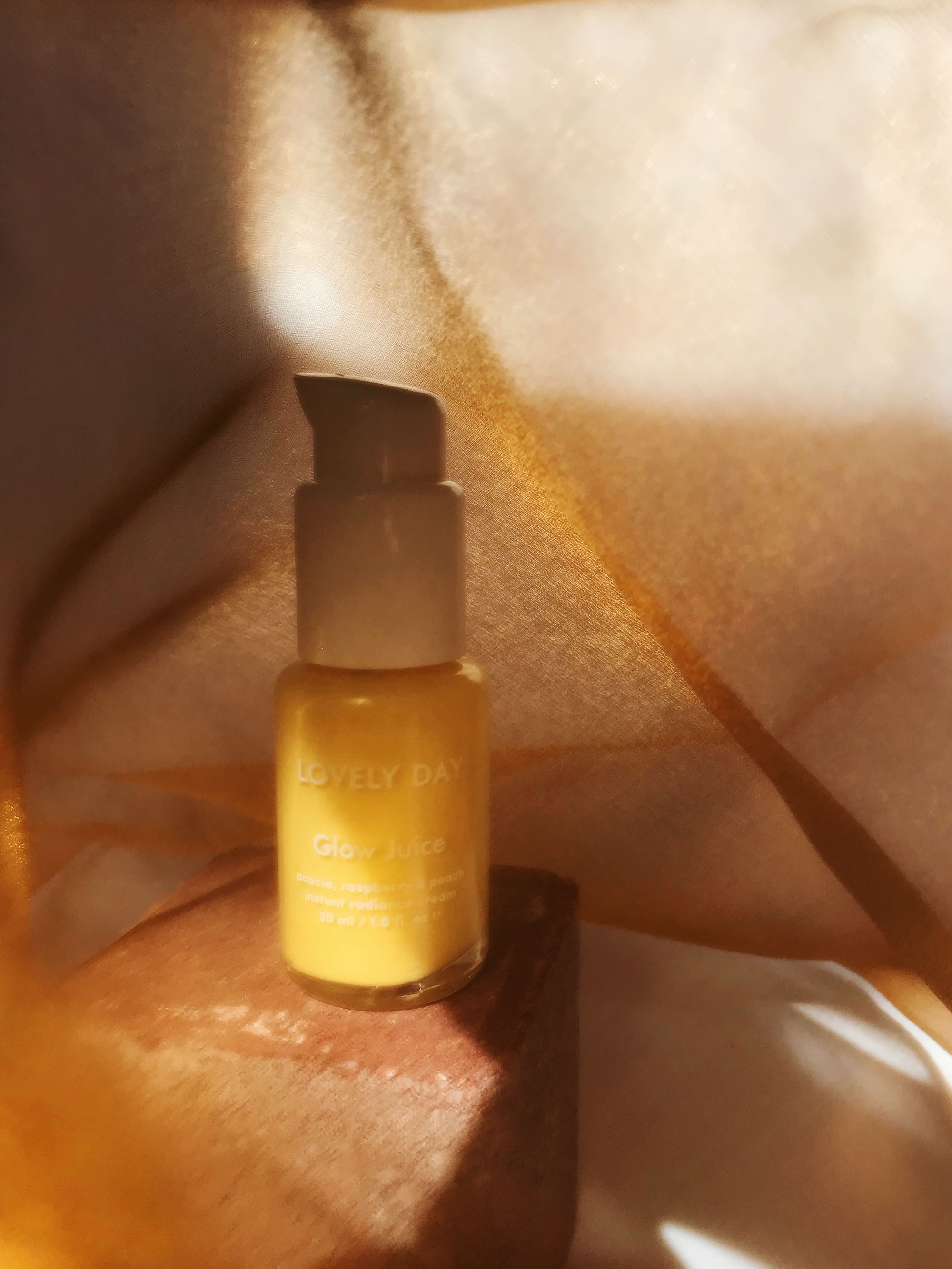 Diese Tagescreme von Lovely Day ist wie ein Weichzeichner für die Haut. Mineralpigmente in Gold- und Pfirsichtönen verleihen der Haut einen wunderschönen zarten Glow. Es ist, als würde man seine Tagescreme mit einem Primer mischen: Zappzarapp sieht die Haut ebenmäßiger und feiner aus. Das Hervorstechende sind hier auch die Inhaltsstoffe, denn Hyaluronsäure, Akazienextrakt und Sojaprotein straffen die Haut, während kaltgepresstes Pfirsichkernöl und Kaktusfeigenöl, Himbeerextrakt und Sanddornöl die Haut intensiv mit Antioxidantien und Vitaminen nähren.