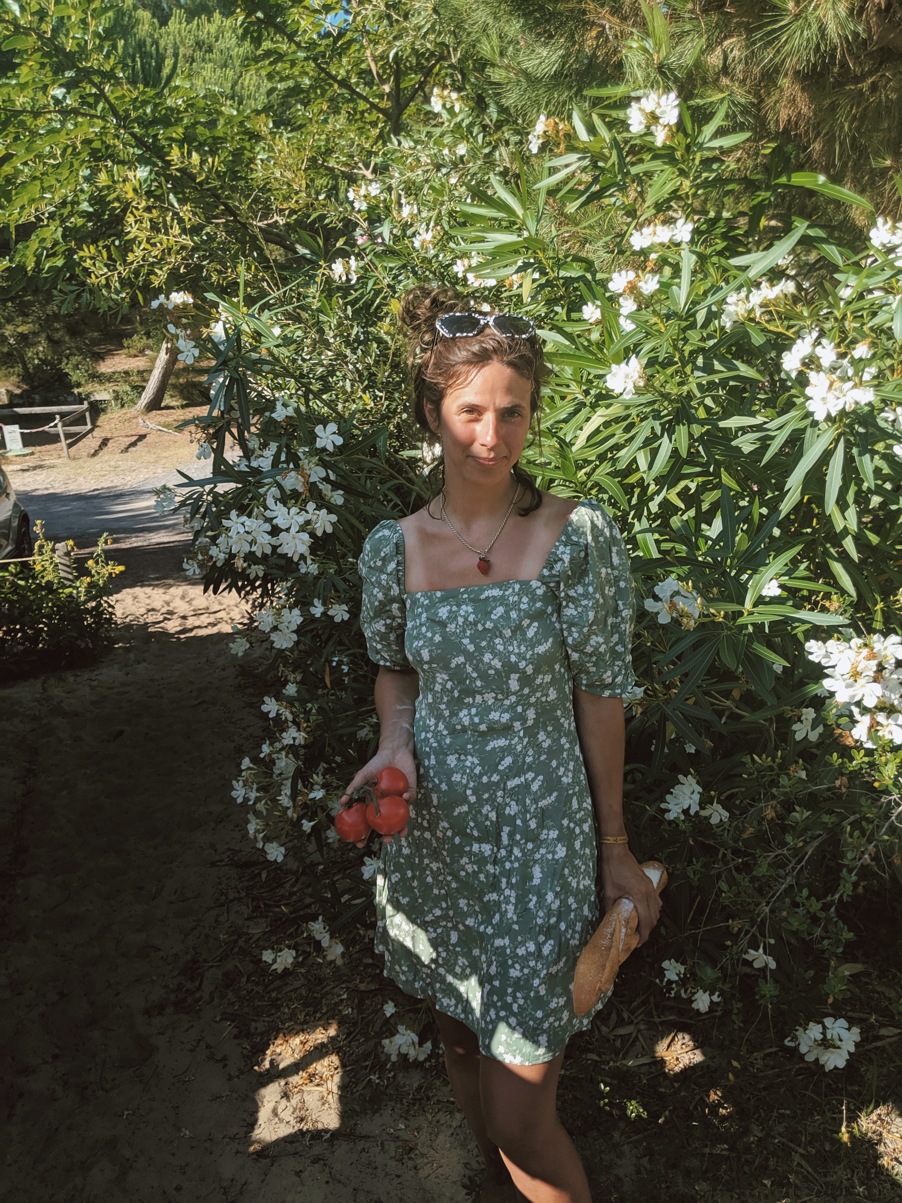 Kleid: Von Mama, Sandalen: COS, Fußband: Kette von Tussi Studio