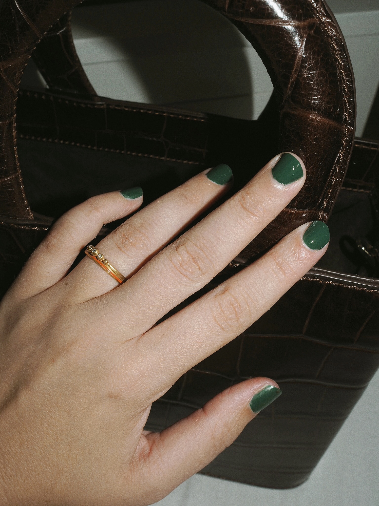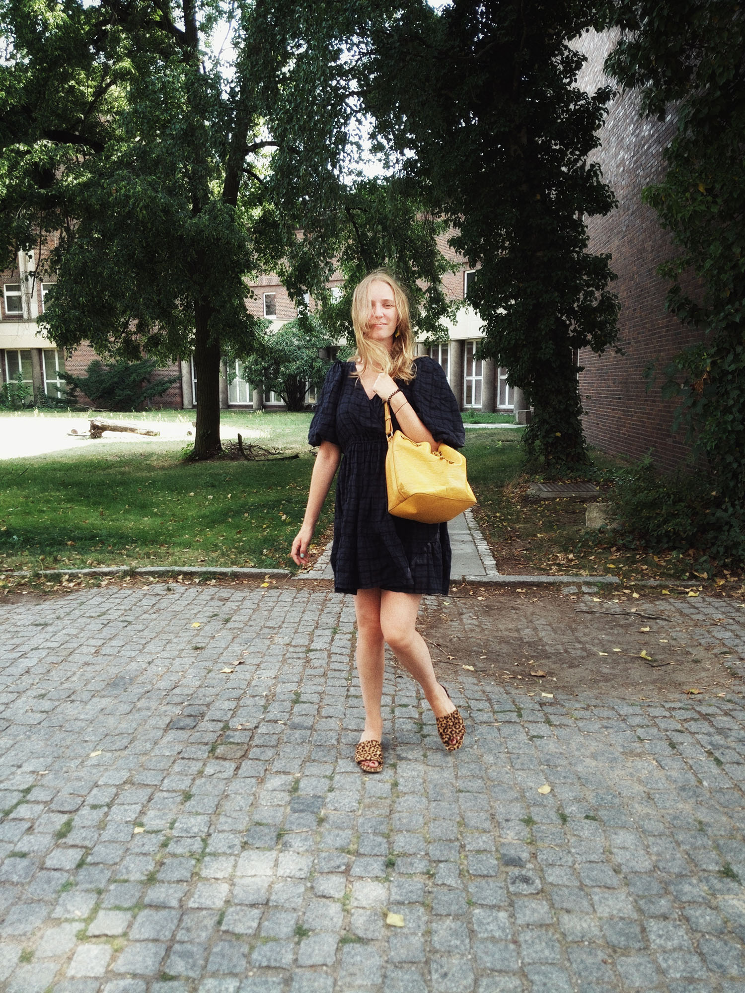 Links: Tasche von Staud (ausverkauft), Ringe von Jane Kønig // Rechts: Kleid von Ganni (alt), Haarreif von Henriette von Gruenberg