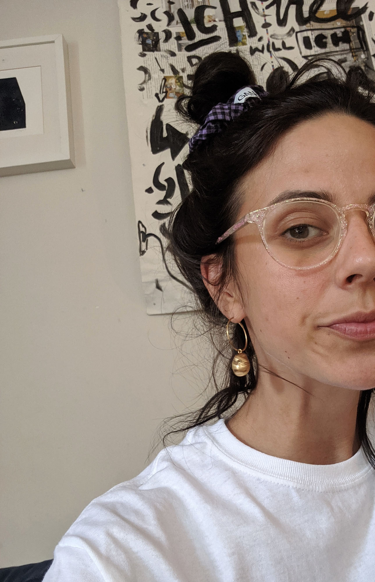 Haargummi: Ganni, Ohrringe: Jane Kønig