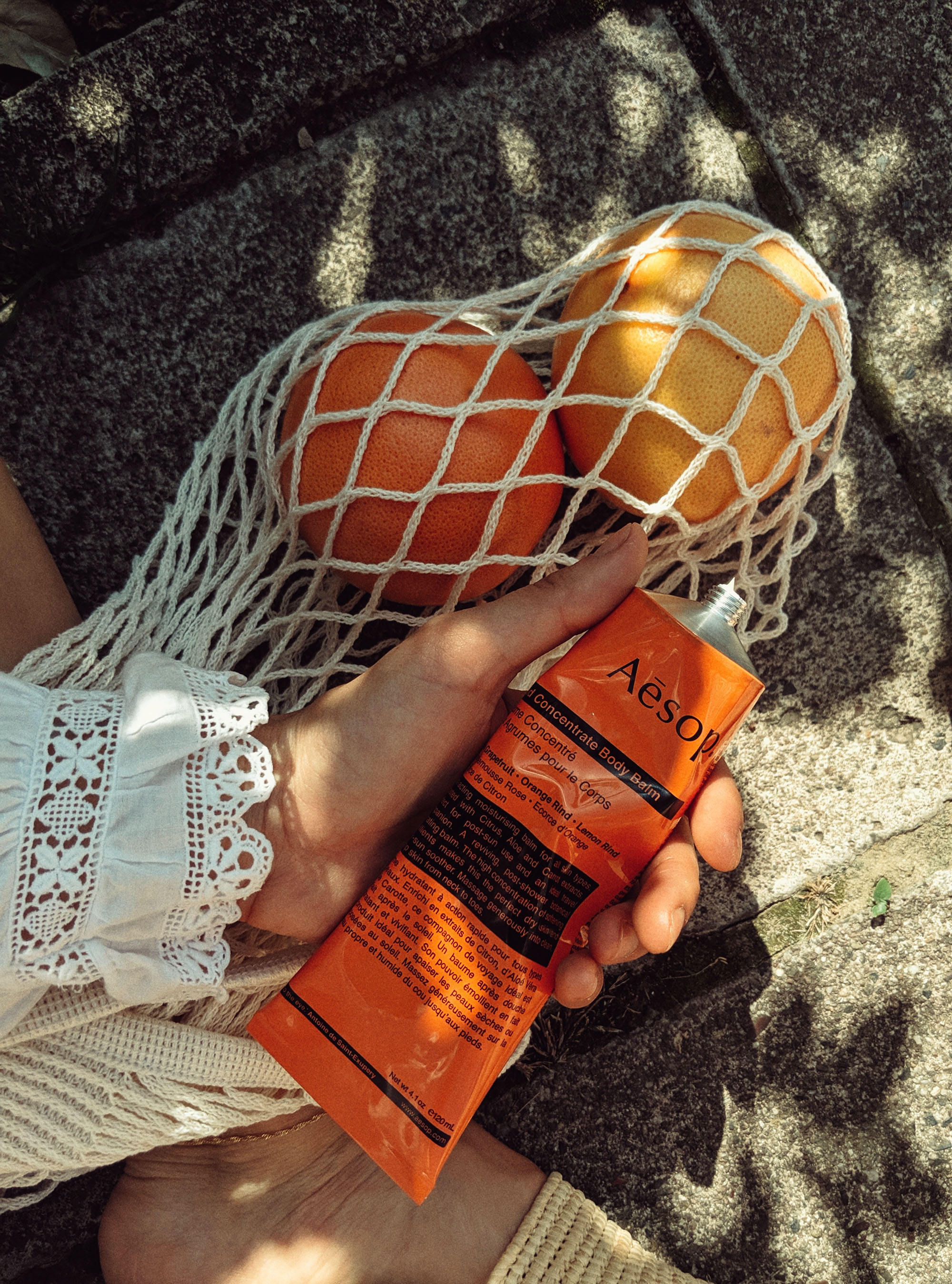 Wenn ich morgens nicht gut aus dem Bett komme, ist das Rind Concentrate Body Balsam wie ein Weckruf für all meine Sinne. Es sagt mir, dass ich in den Tag starten kann, dass alles ok ist und spricht mir Mut zu. Rosa Grapefruit, Orangen- und Zitronenschale gehören zu den Hauptinhaltsstoffen, dementsprechend riecht er sehr frisch und fröhlich. Die enthaltenden Öle kühlen gereizte Haut und Öle aus Nüssen versorgen die Körperhaut parallel mit Feuchtigkeit. Für alle Freund*innen der Badezimmer-Ästhetik ist die Tube in ihrem ocker-rot ein schöner Farbklecks und sorgt zusätzlich hier für gute Laune.