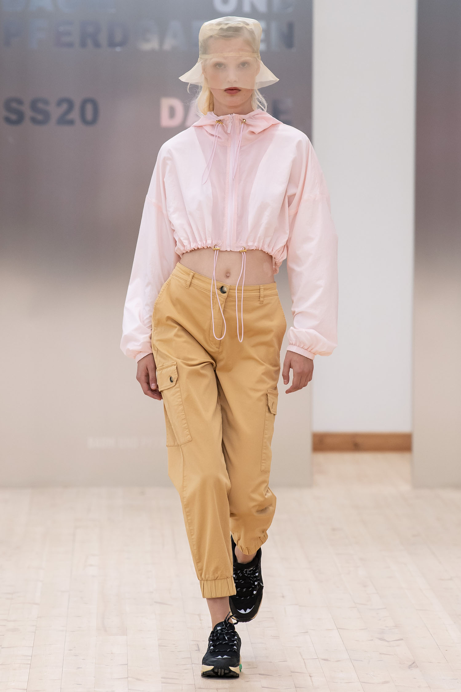 Was uns sonst noch erwartet? Radlerhosen, Westen und zarte Rüschen und Tunnelzüge, die rosefarbene Kreationen zieren. Auch das Thema Nachhaltigkeit soll bei Baum und Pferdgarten weiter ausgebaut werden: Über 40 Prozent der Materialien besteht aus nachhaltigen und recycelten Textilien wie Baumwolle und Polyester (aus alten Plastikflaschen). Auch das Denim wurde schonender behandelt und verbrauchte 85 Prozent weniger Wasser als andere Jeansmaterialien. (Sarah)
