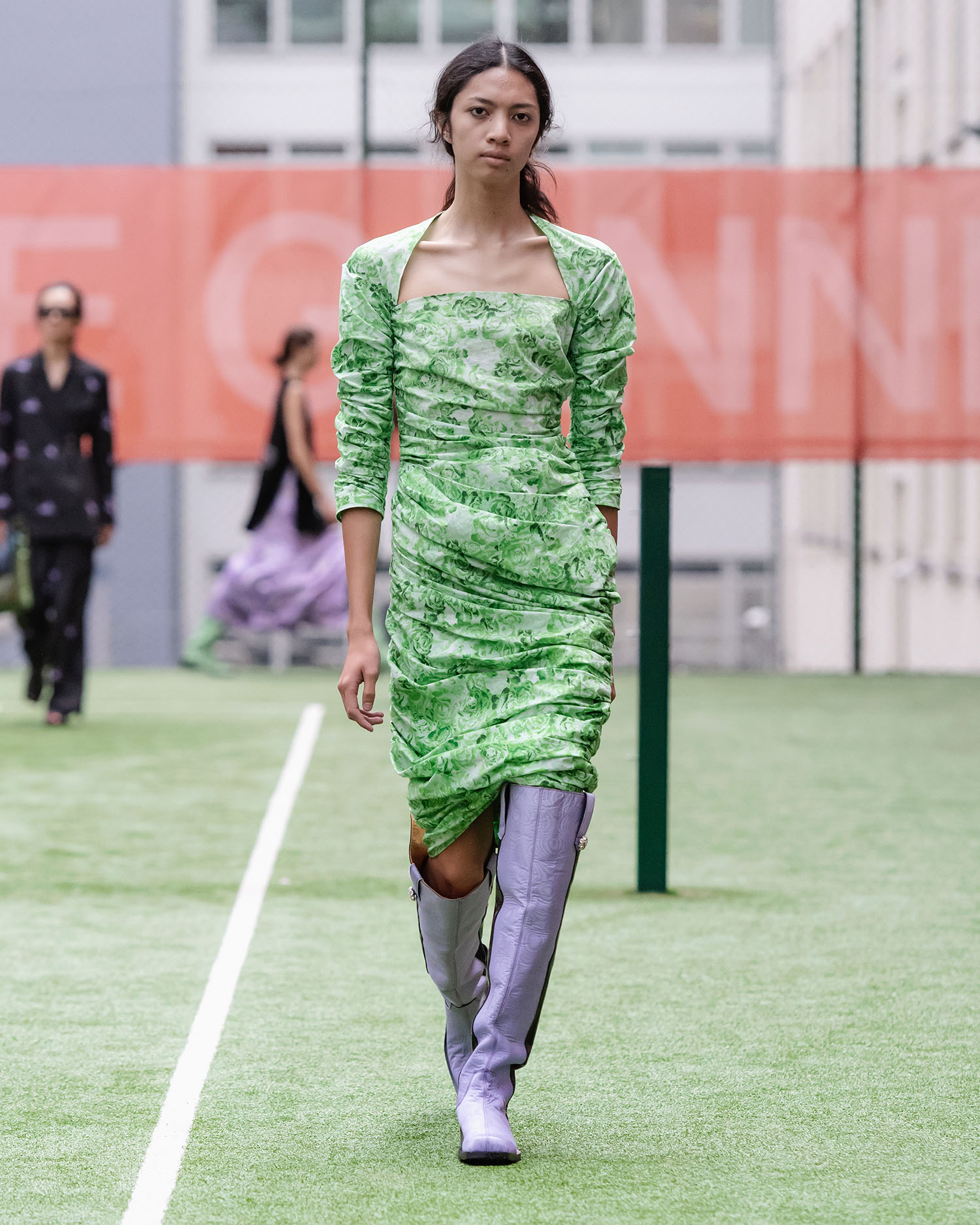Zum 10jährigen Ganni-Jubiläum nimmt uns Ditte an den Ort zurück, wo alles begann: Der Tennis Court des Mercur Hotels im Herzen von Kopenhagen – der Ort, der wie kein anderer für den kometenhaften Aufstieg des Kopenhagener Ready-to-Wear-Labels steht. Der Titel DOUBLE LOVE manifestiert damit gleich zwei Meilensteine: Einmal das 10jährige Jubiläum von Ditte und Nicolaj Reffstrup bei GANNI und das fünfjährige Runway-Debüt des Kopenhagener Kultlabels.