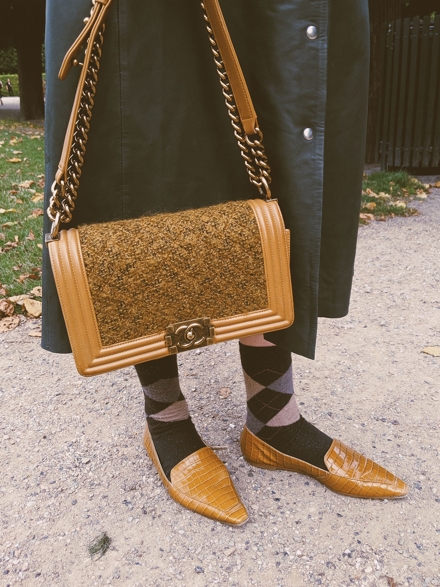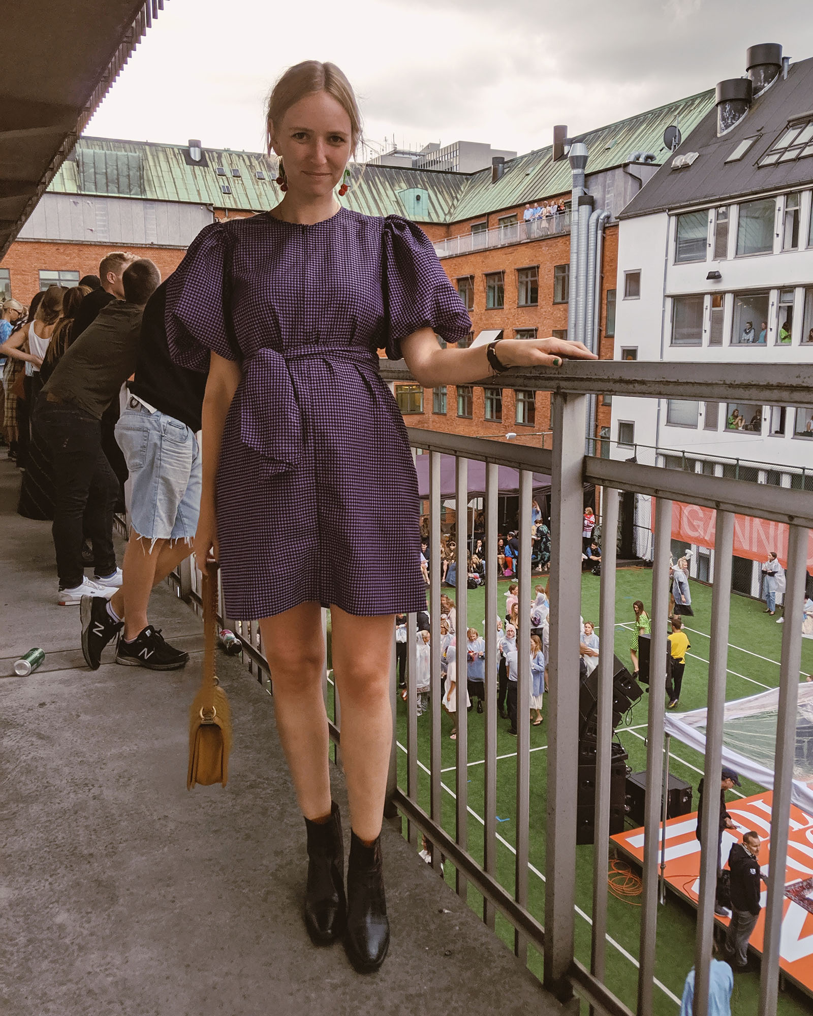 Kleid von Gestuz, Tasche von Chanel via Vestiaire Collective, Schuhe von Aeyde