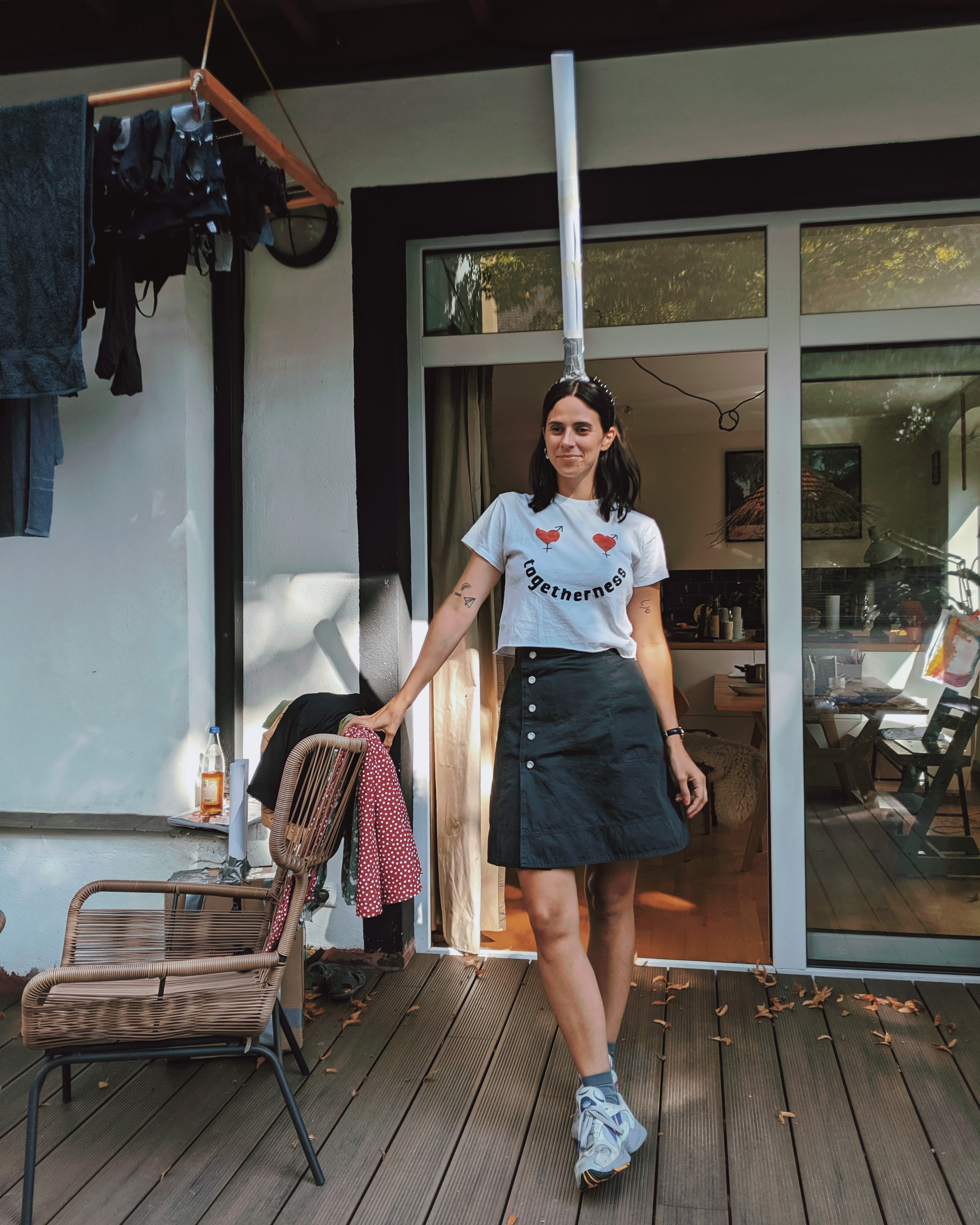 Schornstein: Lio, Rock: Acne Studios. Sneaker: Adidas yung 1
