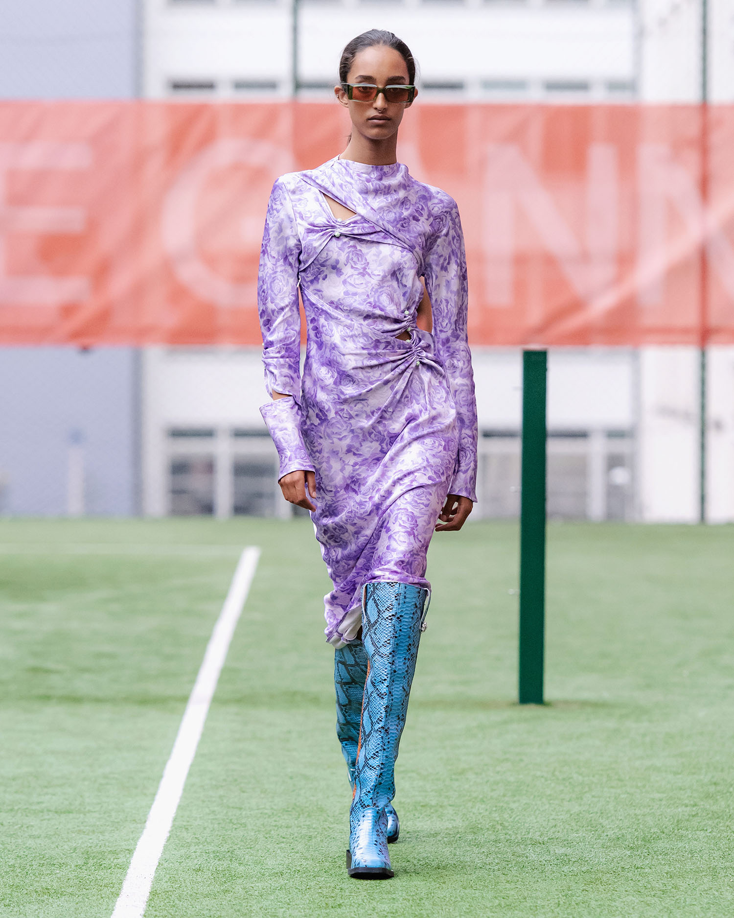 Ein bisschen Britney Spears steckt drin, eine Hommage an Geisha-Kleider findet ebenfalls statt, eine Prise 70er Jahre darf außerdem nicht fehlen und sogar das Hier und Jetzt wurde bei Dittes sogenannter Therapie-Kollektion nicht außen vor gelassen. Meine Highlights der Linie? Der Jeans-Zweiteiler, die Kleider mit Square-Neck, die neongrünen Prints und Stiefel und die Fake Snake-Skin Bermuda-Shorts.