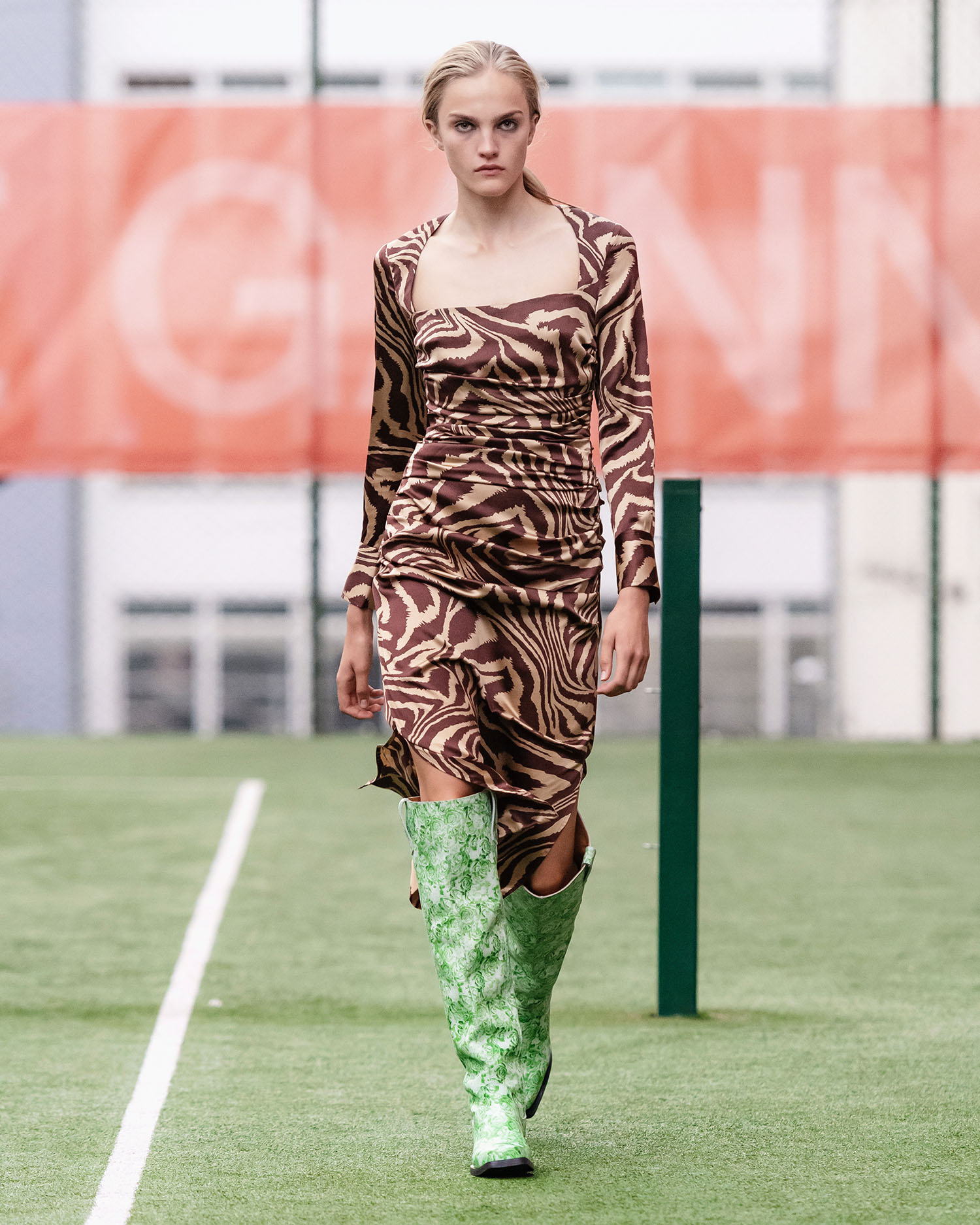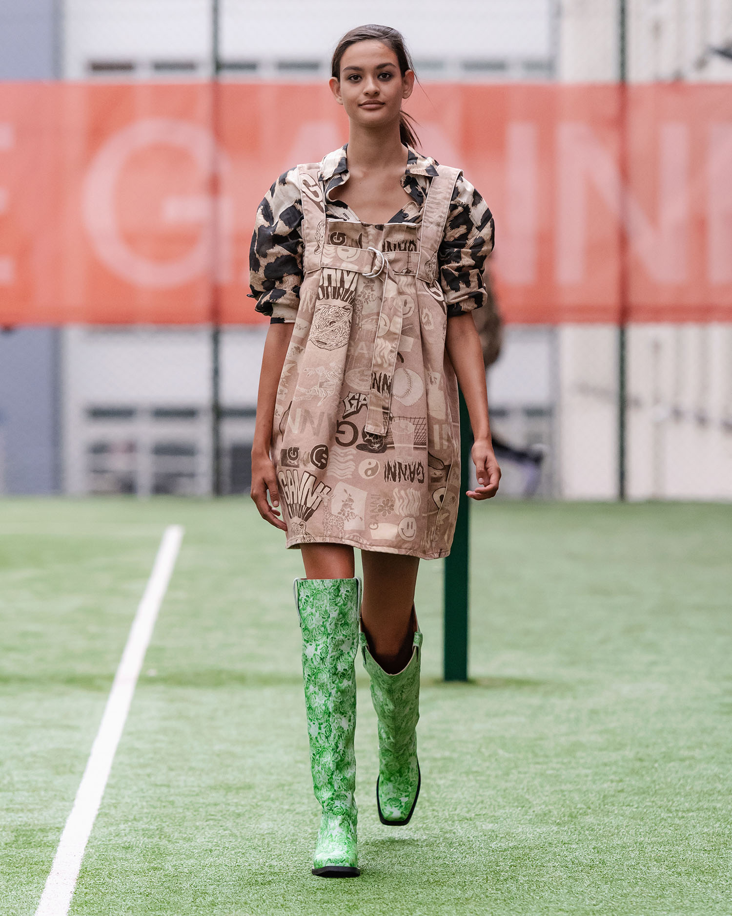 Und genau dafür ist Ditte und ihr Team an den Ort zurückgekehrt, an dem vor fünf Jahren die erste Ganni Show stattfand, fünf Jahre nach Gründung des Labels, wagte Ganni die erste Show auf dem Tennisplatz des Mercur Hotels – im Sommer 2014 inmitten der dänischen Hauptstadt. Es gab also gleich zwei Jubiläen zu feiern: Die Gründung und die allererste Show, die für mich vor allem dazu geführt hat, dass die Kopenhagener Fashion Week wieder genau zu dem wurde, was sie wenige Saisons zuvor schon einmal war: Eine der inspirierendsten, schönsten, gemütlichsten und mitunter zeitgeistigsten Modewochen überhaupt.