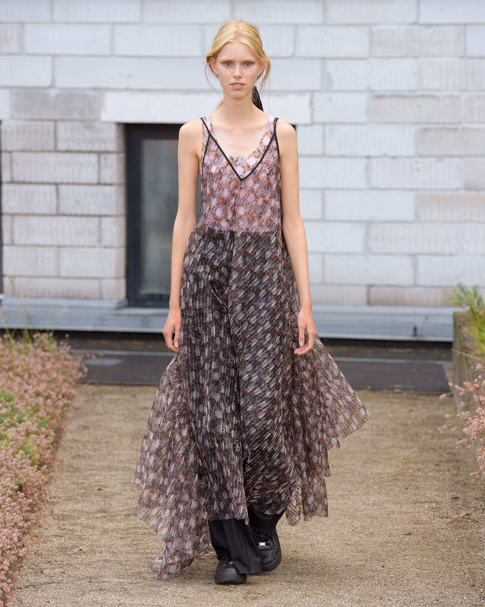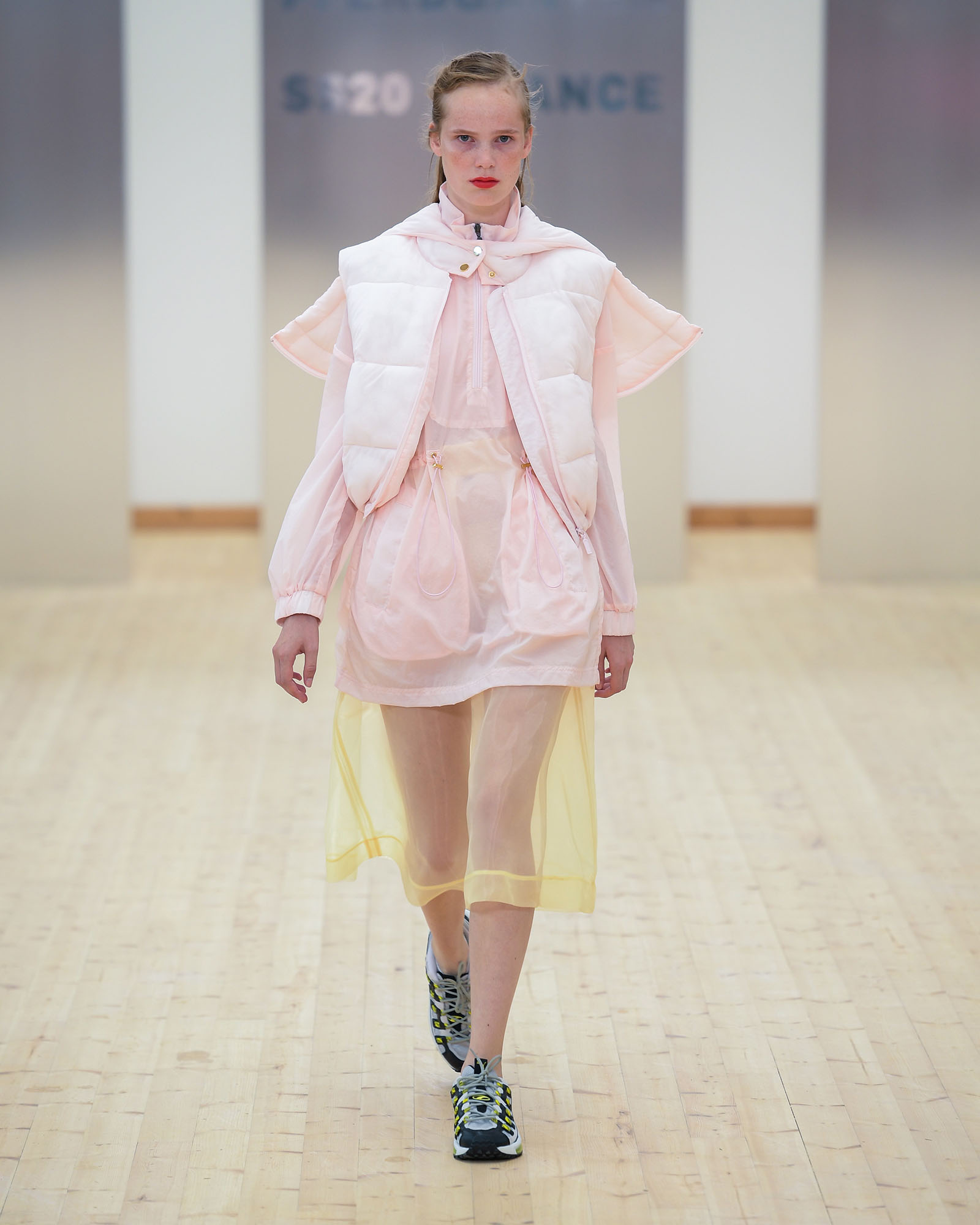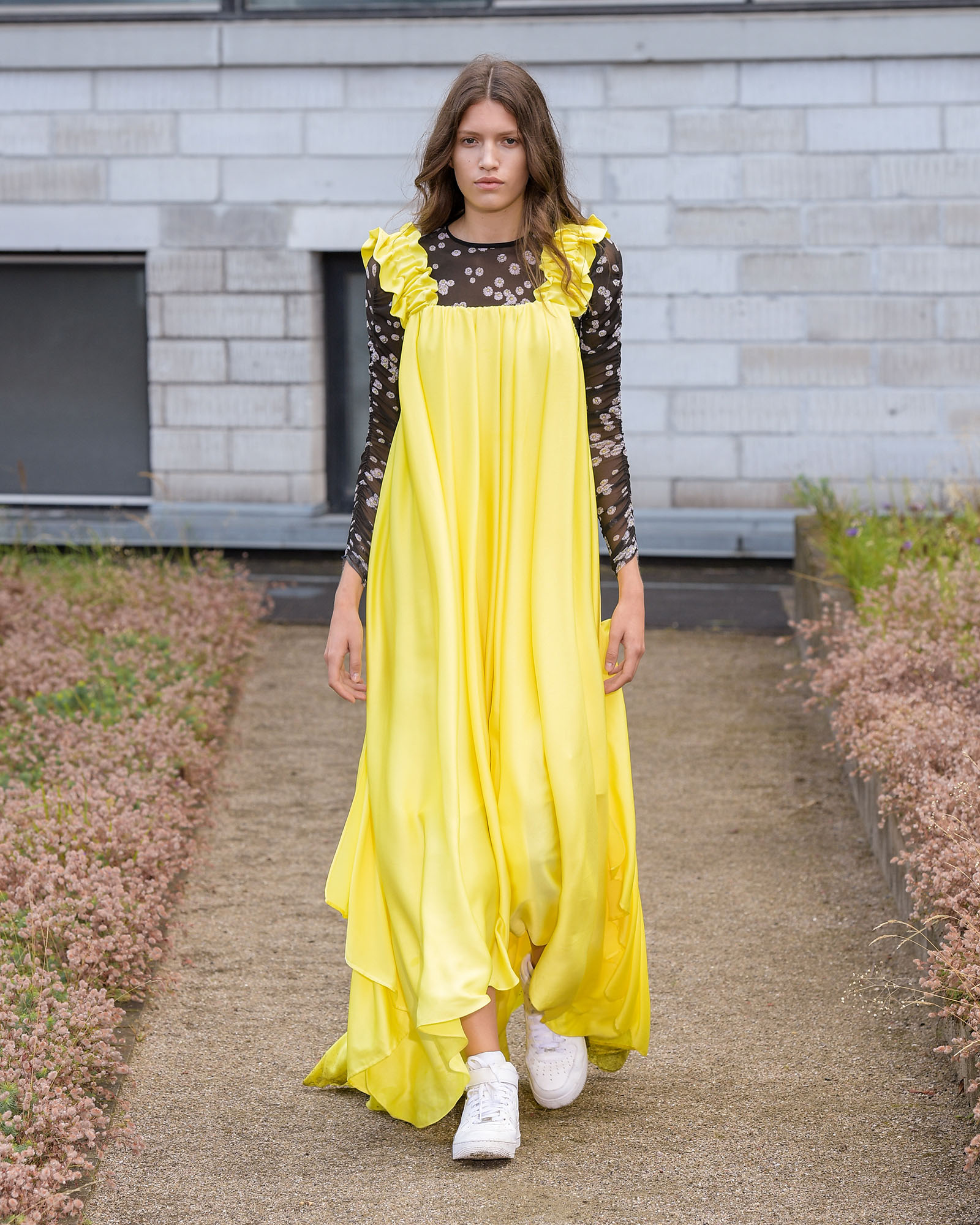 In dieser Saison fiel der Startschuss für verträumte Stoffe wie Organza und Tüll, wunderbarerweise stehen auch für nächstes Jahr alle Zeichen auf Transparenz. Ganz besonders hervorragend eignen sich die schönen Stücke für das Layering, ob unter dem Kleid, über einem T-Shirt oder gleich kreuz und quer. Baum und Pferdgarten präsentierte mal eben eine Hose aus dem zarten Stoff, die für weniger Freizügige auch fantastisch mit Mesh Leggings und Logo-Strumpfhosen getragen werden kann.